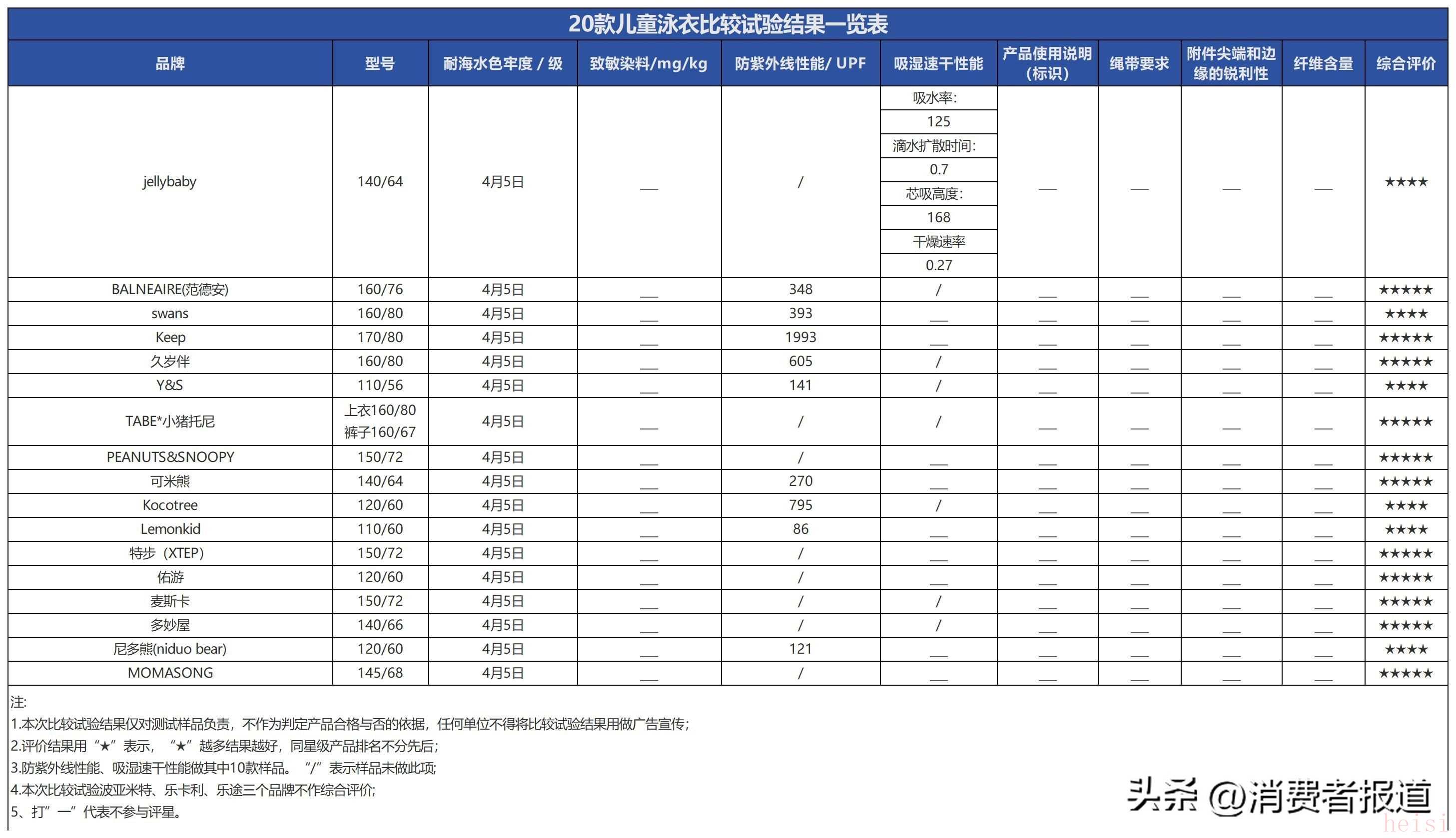 經(jīng)過評估,以下品牌的兒童泳衣在舒適性