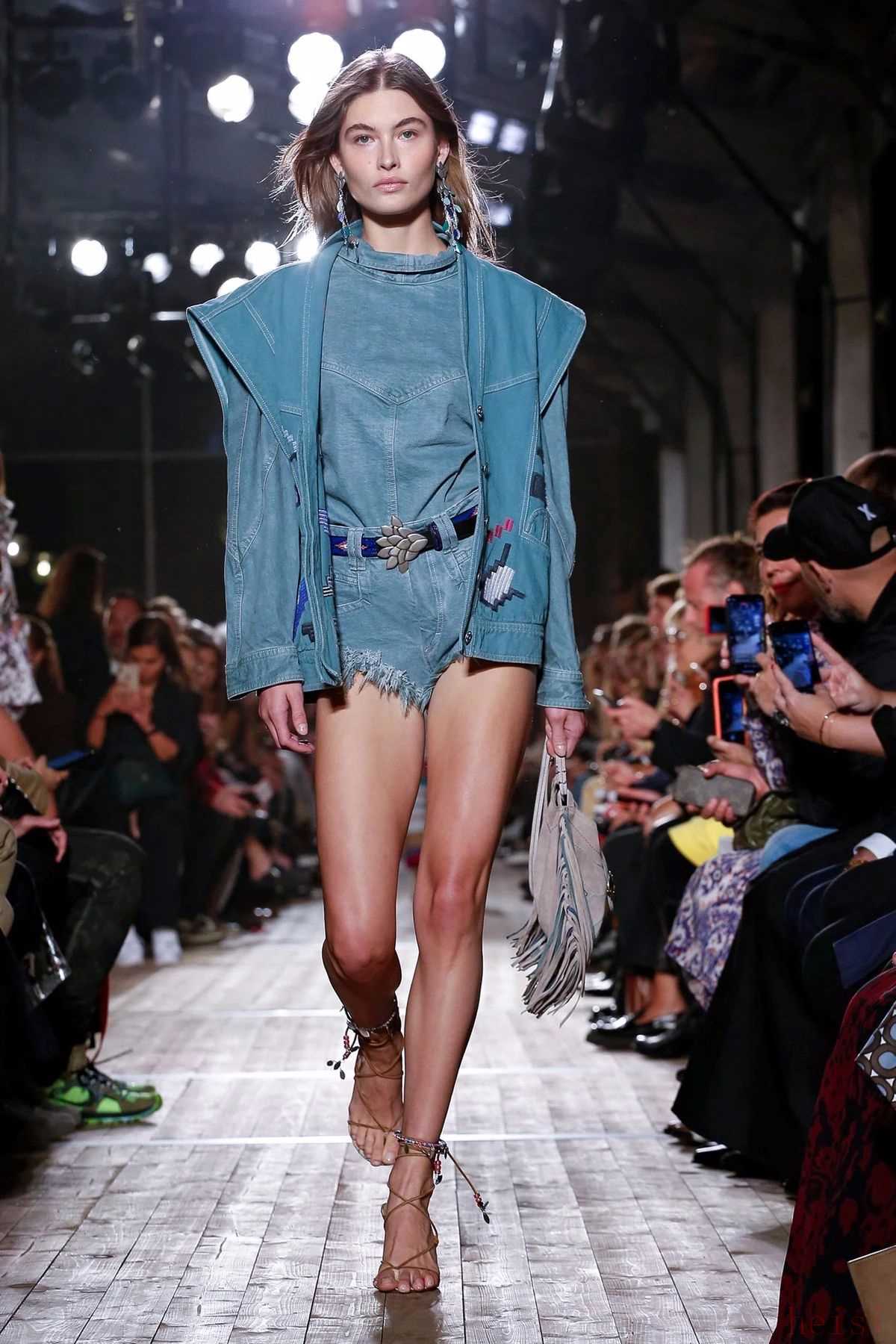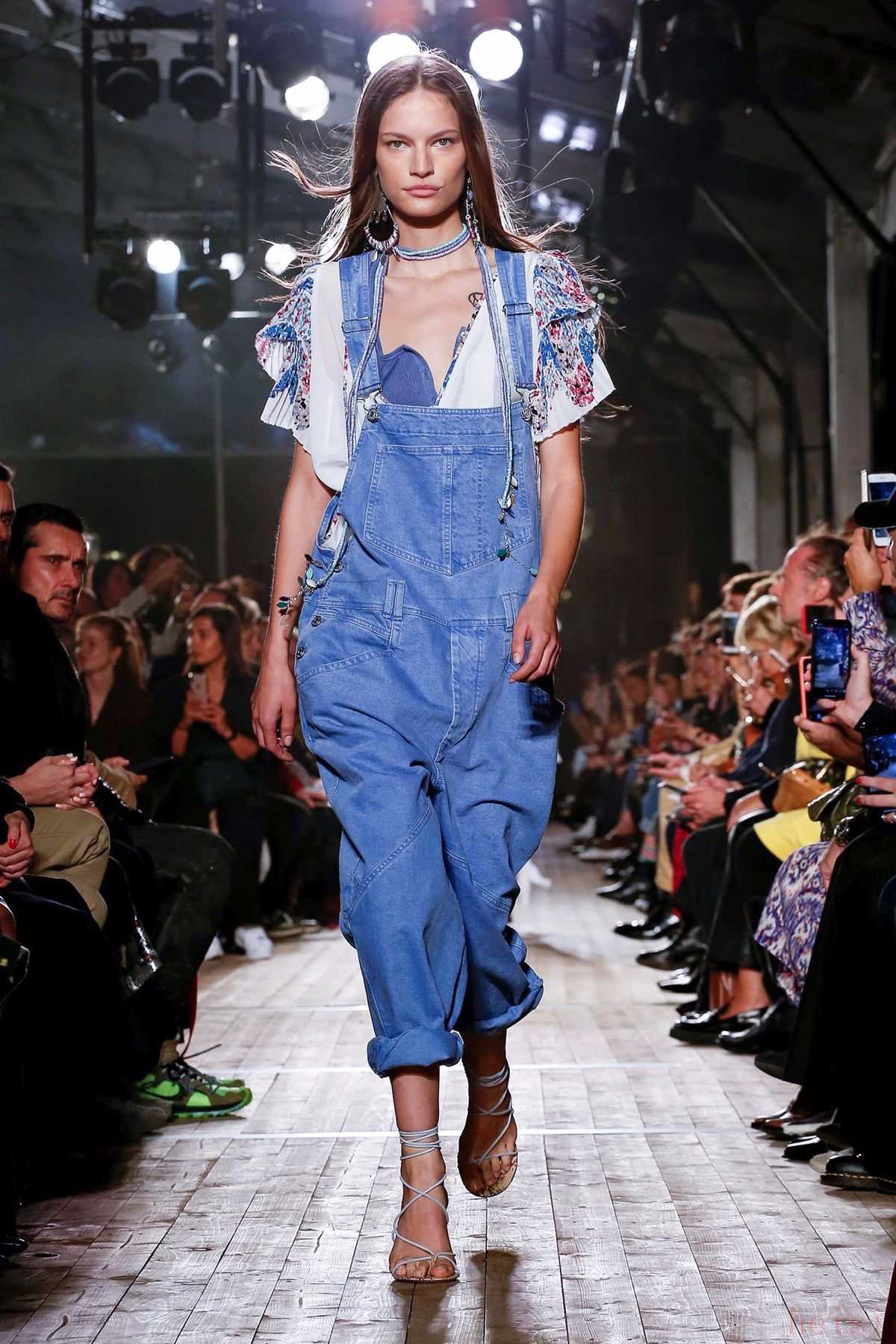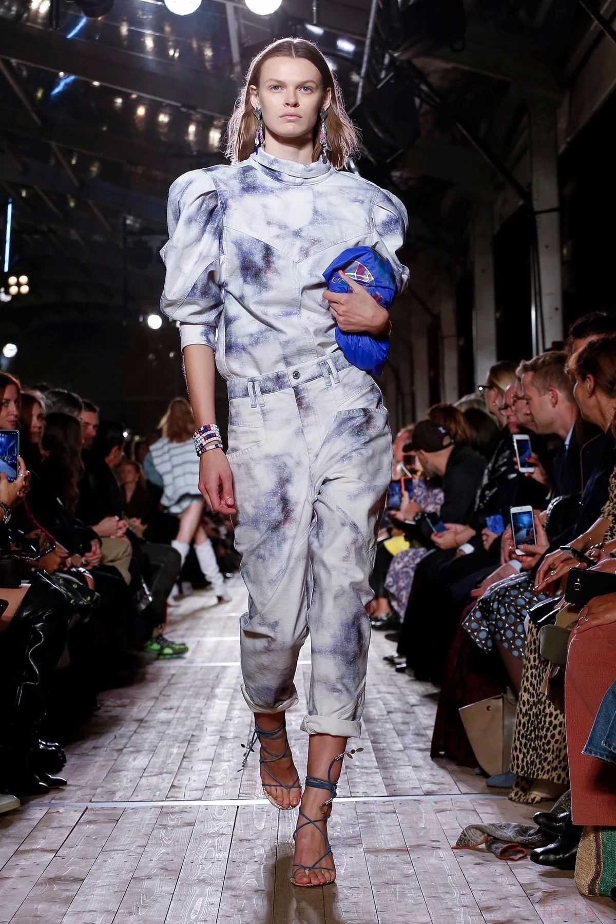 Isabel Marant一貫具有的復古感,也從原始牛仔的面料就能體現(xiàn)。天空般的藍色很好的緩解了碎花的繁雜,十分具有復古摩登感。