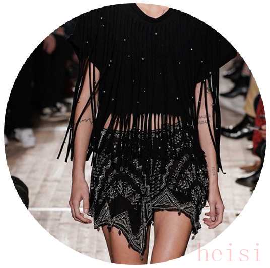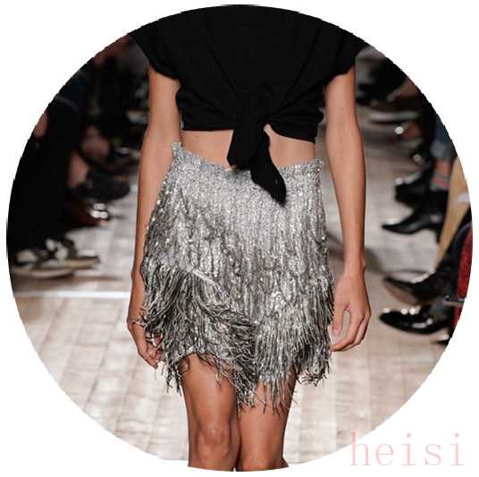 精致的流蘇長短不一,點綴在腰間、裙擺之上,增加了服裝的律動感,尤為提升氣質。
