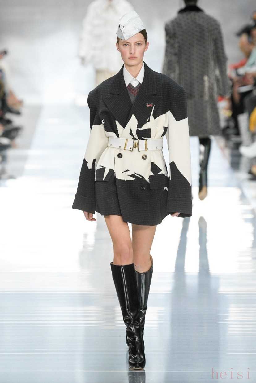 整體搭配上也推出了利落的襯裙和高筒靴都呈現(xiàn)出軍事正裝的風格。