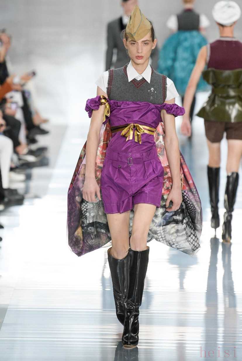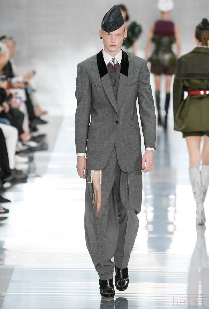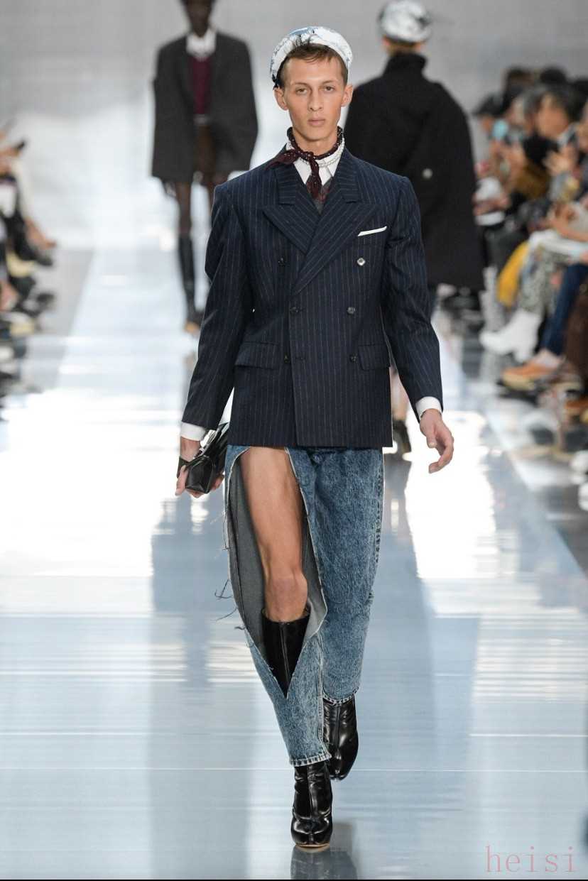 中規(guī)中矩的制服,依靠褲子的力量,打破次元壁,秉承John Galliano所探索的理念,超越褲子的種類。