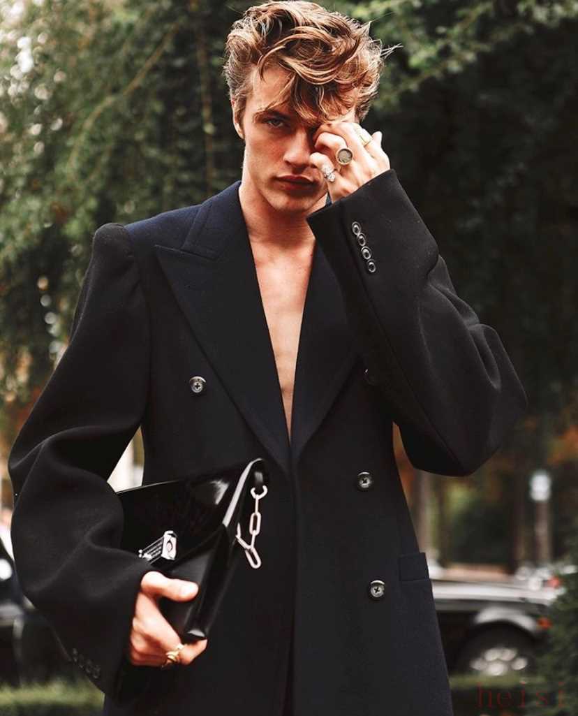 同時現(xiàn)身在秀場的還有模特Lucky Blue Smith,一身剪裁精致的西裝,顏值真的沒話說。