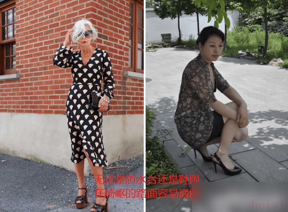 原文里提到的“鞋跟過高易摔倒”“行走慢影響行程”“不合腳毀體態(tài)”,簡直是現(xiàn)實的縮影。有數(shù)據(jù)統(tǒng)計,國內(nèi)每年因穿高跟鞋就醫(yī)的足部損傷案例超200萬,其中40歲以上女性占比達65%。更扎心的是,小個子穿過高的高跟鞋反而顯腿短,像秦海璐曾被拍到穿超高跟鞋弓著背走路,優(yōu)雅感全被“抓地式”體態(tài)敗光——這哪是“變美”,分明是“受罪”。