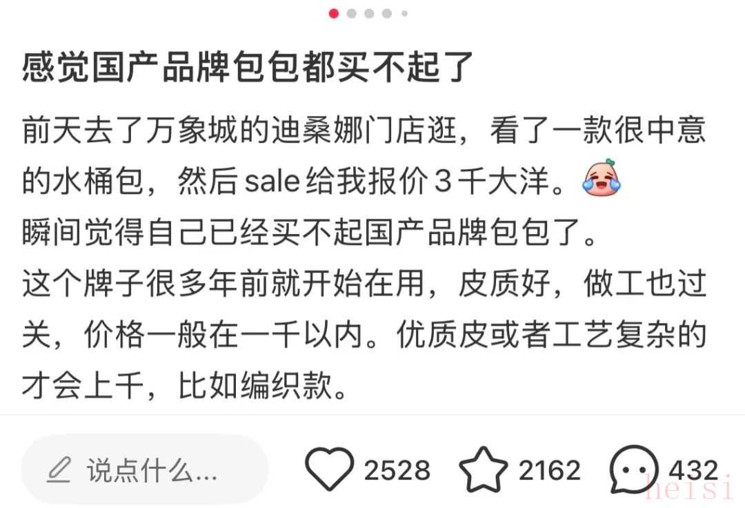 再從時間維度來看,千元國產(chǎn)包的崛起和奢侈品銷量的下滑在時間上有一定的重合。奢侈品市場在2022年就開始出現(xiàn)增長放緩甚至下滑的情況,至今仍持續(xù)低迷。而國產(chǎn)包自2020年開始逐步發(fā)展,多從線上發(fā)力,抓住了疫情三年國人消費(fèi)理性的窗口期,到2024—2025年迎來爆發(fā)期。但隨著國產(chǎn)包的爆火,網(wǎng)友們敏銳地察覺到,國產(chǎn)包的價格在近幾年悄然攀升。小紅書上一個熱門帖子“感覺國產(chǎn)品牌包包都買不起了”,有2000多點(diǎn)贊。