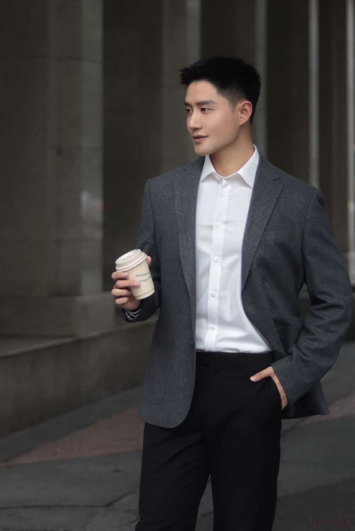 老牌男裝雅戈爾的定位還是偏商務(wù)、正式,白色襯衫搭配灰色西裝,成功人士的標配。