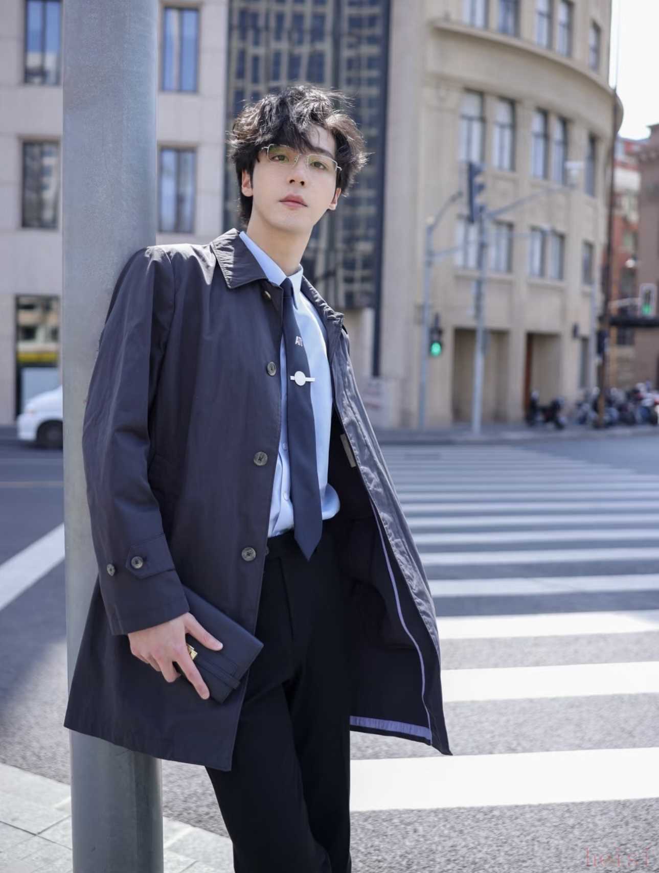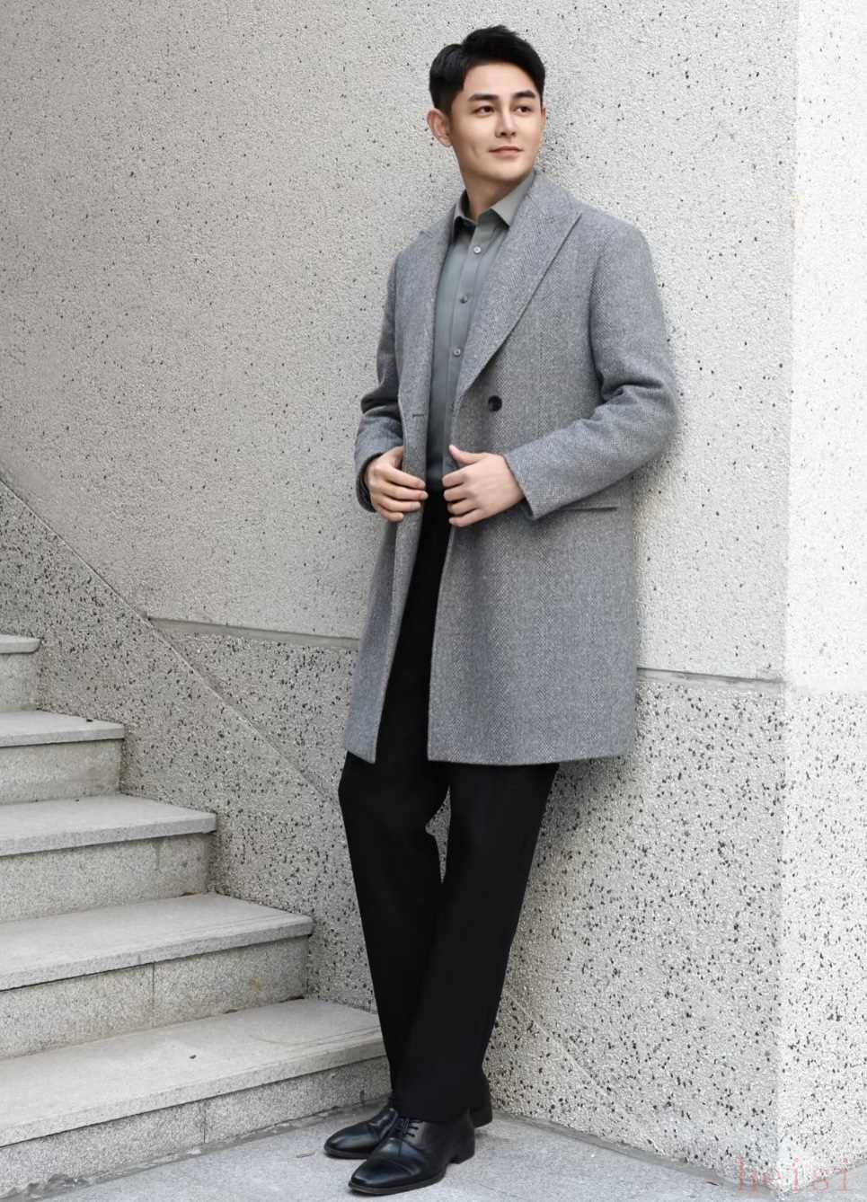 西服在日常穿搭中還是過于正式,所以可以在襯衫外搭配一件羊絨大衣,雖然也是比較商務(wù)風的,但整體穿搭上會更加松弛和高級。