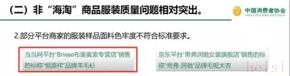 諷刺的是,作坊品牌就算了,近百年的老字號(hào)恒源祥也被特別點(diǎn)名。