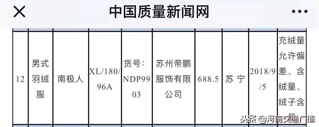 今年11月,浙江省公布2018年羽絨服裝產(chǎn)品監(jiān)督抽查結果發(fā)布,南極人等標稱品牌羽絨服裝上不合格名單。