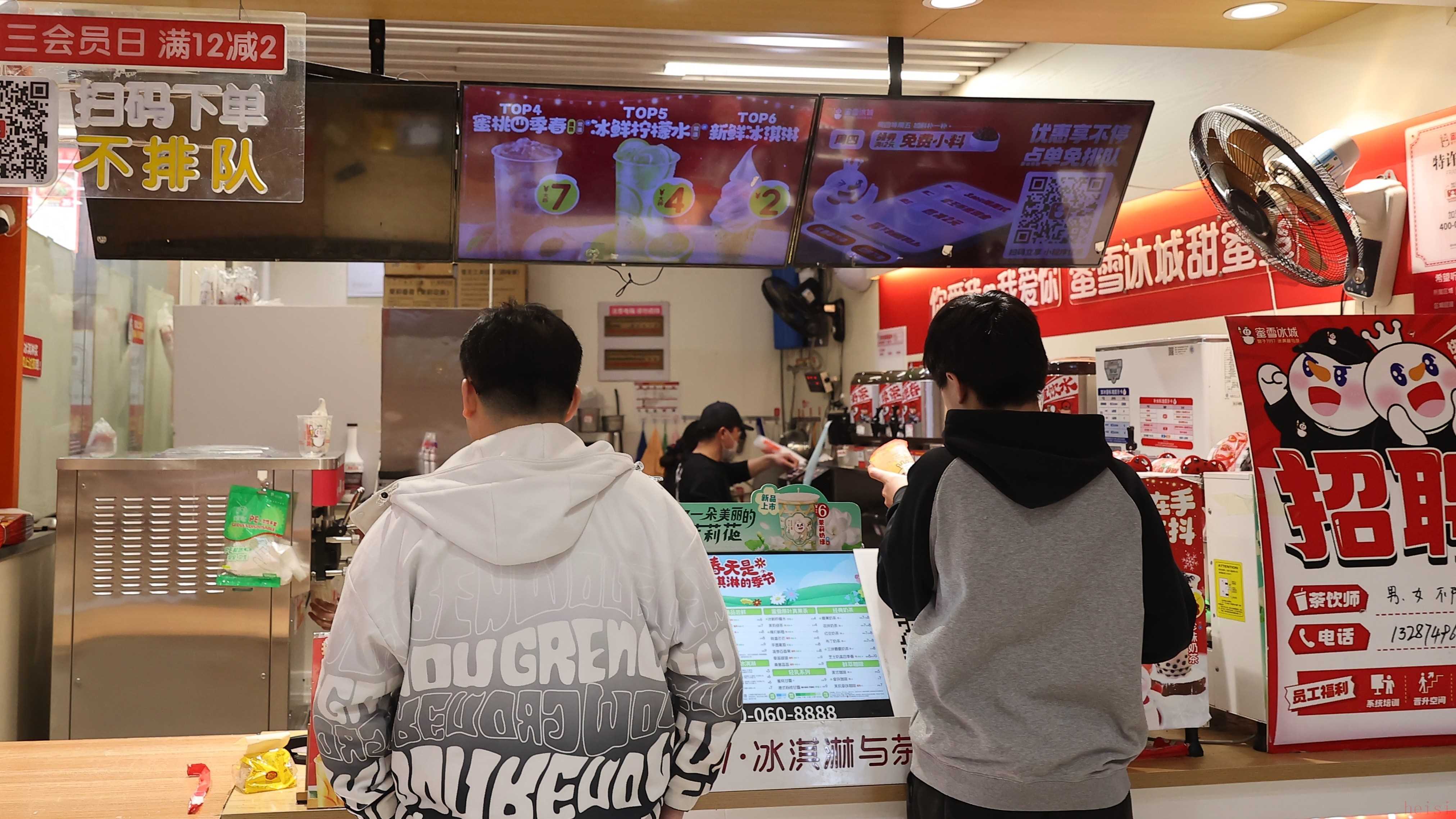 蜜雪冰城官網(wǎng)顯示,省會城市、地級城市、縣級城市的加盟費分別為 11000 元/年、9000 元/年、7000 元/年。加上日常管理、門店設備、原材料、裝修和房租,35 萬元起就能開一家蜜雪冰城。