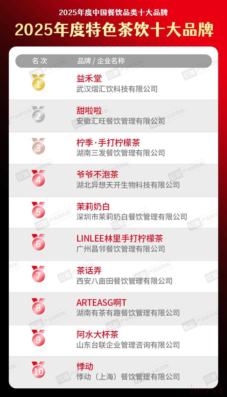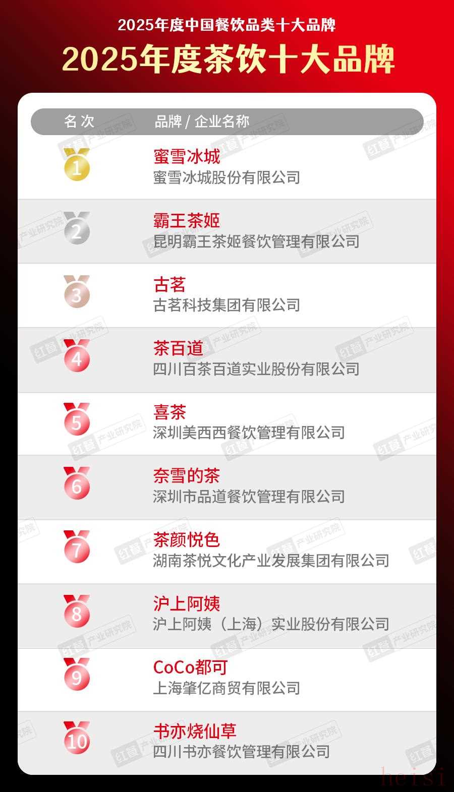 (1)2025年度茶飲、特色茶飲、咖飲十大品牌