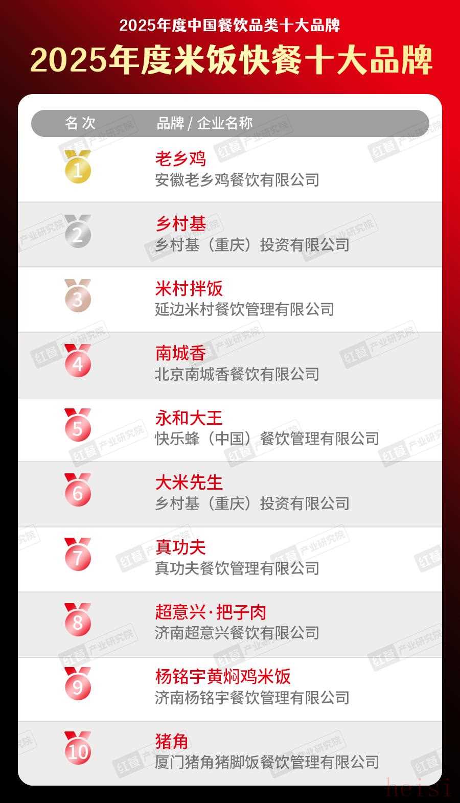 在“2025年度米飯快餐十大品牌”榜單上,老鄉(xiāng)雞、鄉(xiāng)村基、米村拌飯、南城香、永和大王、大米先生、真功夫、超意興·把子肉、楊銘宇黃燜雞米飯、豬角等上榜品牌展現(xiàn)出強勁的品牌實力。
