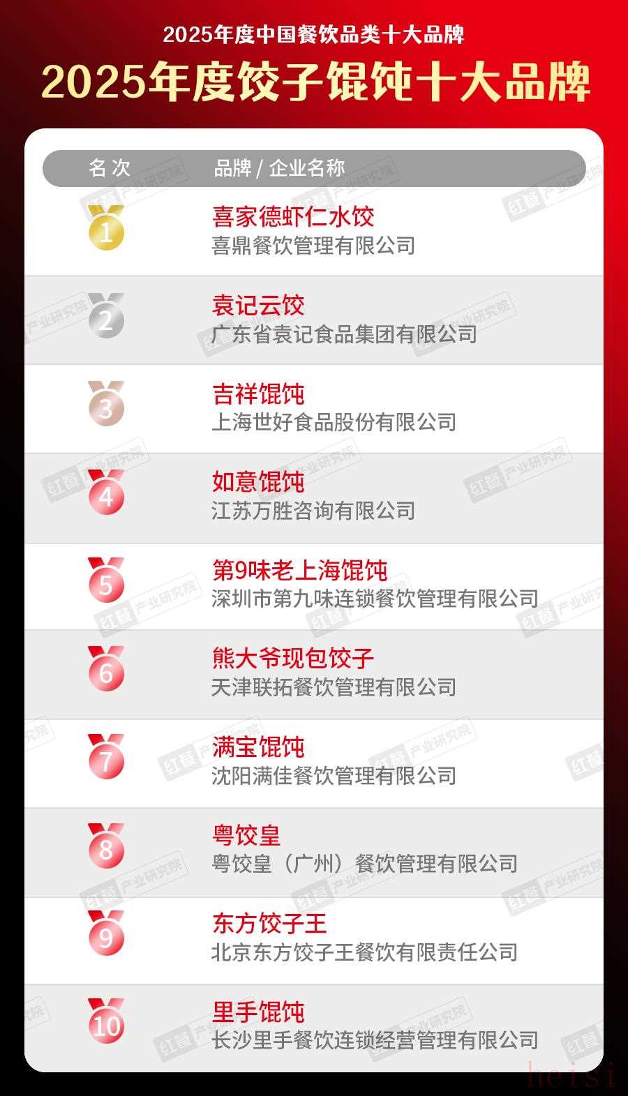 在“2025度餃子餛飩十大品牌”中,喜家德蝦仁水餃、袁記云餃、吉祥餛飩、如意餛飩、第9味老上海餛飩、熊大爺現(xiàn)包餃子、滿寶餛飩、粵餃皇、東方餃子王、里手餛飩等上榜品牌表現(xiàn)突出,各有亮點。