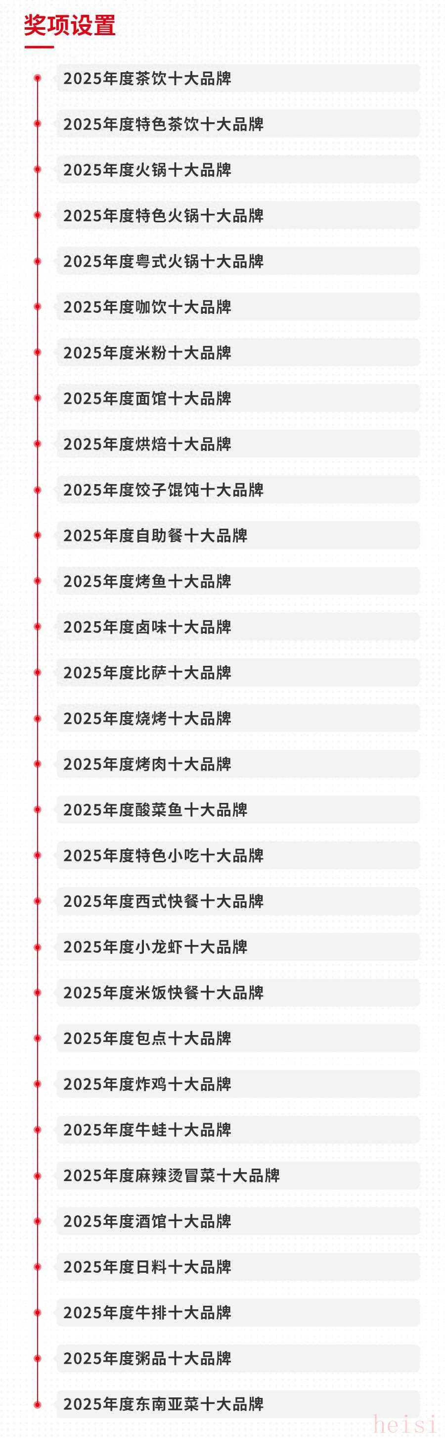 “中國餐飲品類紅鯉獎”作為國內(nèi)首份針對“餐飲品類”的權(quán)威榜單,已成功舉辦多屆?!爸袊惋嬈奉惣t鯉獎”旨在評選出在各細(xì)分領(lǐng)域綜合表現(xiàn)優(yōu)秀的餐飲品牌,肯定這些頭部品牌為細(xì)分領(lǐng)域發(fā)展所作出的貢獻(xiàn),并為其他餐飲行業(yè)人士提供品牌塑造的榜樣思路。