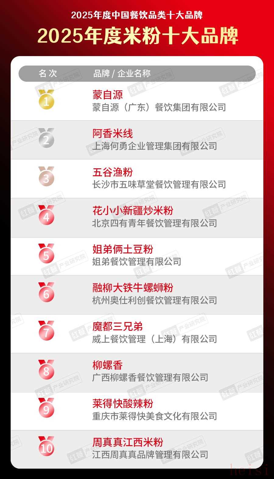 (3)2025年度米飯快餐、米粉、面館十大品牌