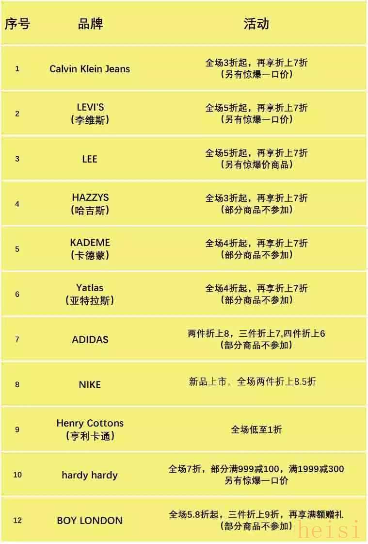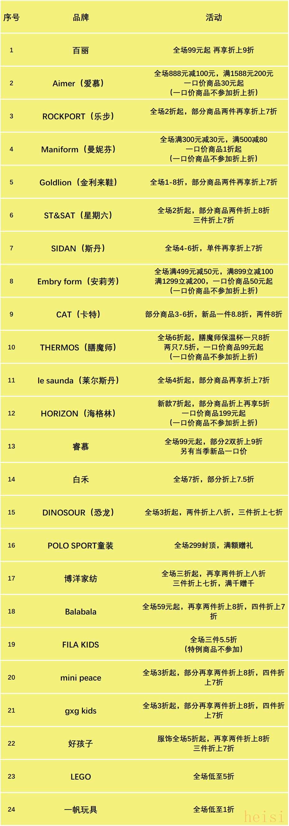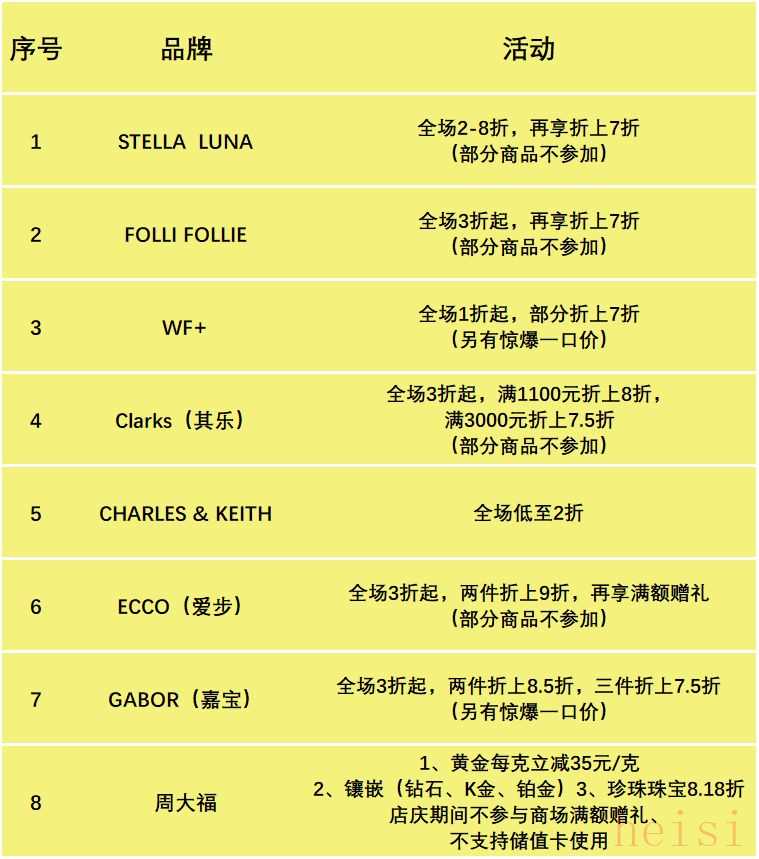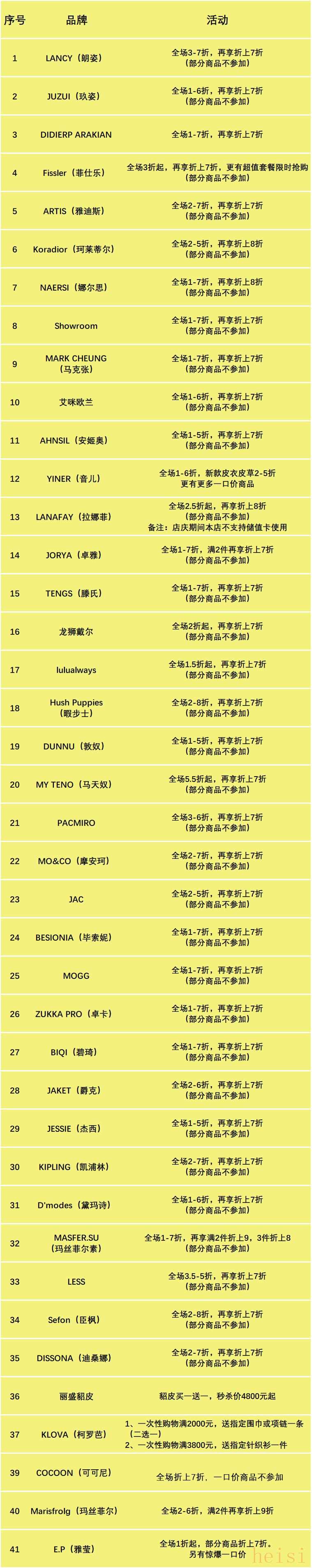 天美杉杉奧特萊斯周年慶品牌折扣明細(xì)一覽表