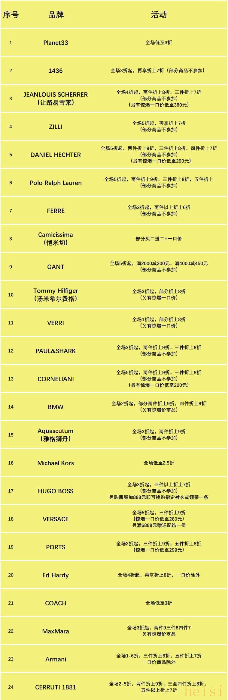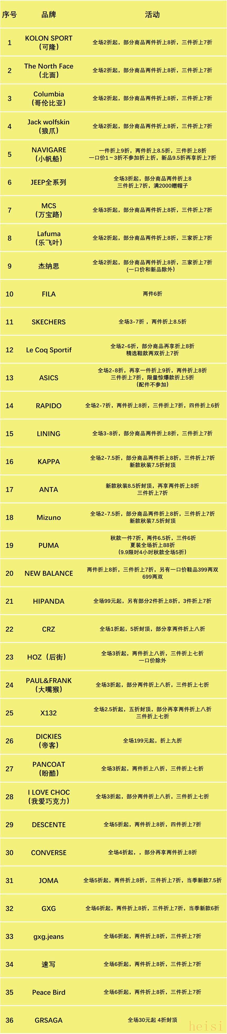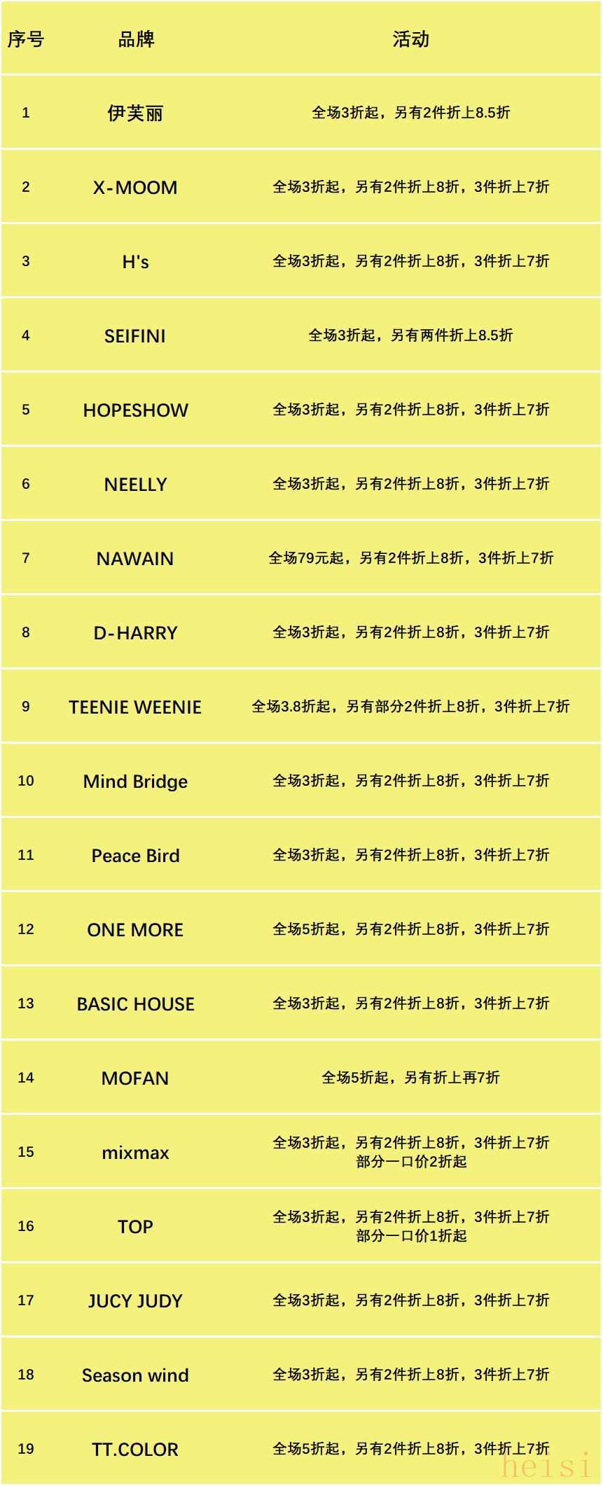 天美杉杉奧特萊斯周年慶品牌折扣明細(xì)一覽表