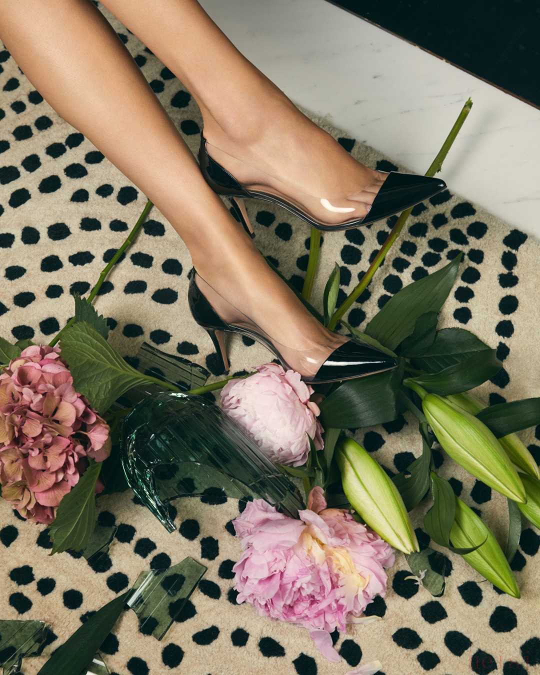 Gianvito Rossi家最著名的就是那雙博主明星們腳下常穿的pvc拼接款。這雙鞋采用經(jīng)典細(xì)高跟鞋的形狀,將鞋頭和鞋尾處的皮質(zhì)保留,而中間兩側(cè)的皮質(zhì)都改成透明pvc材質(zhì)。這樣的設(shè)計(jì),將女性腳步的魅力更加天然無(wú)修飾地展現(xiàn)出來(lái),性感別致,深受各大明星喜愛(ài)。