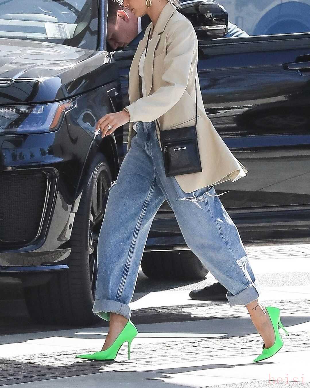 米蘭達(dá)·可兒也是Gianvito Rossi的忠實(shí)粉絲,連出街都穿著這雙裸色pvc款高跟鞋,一襲米色吊帶裙,性感又休閑。