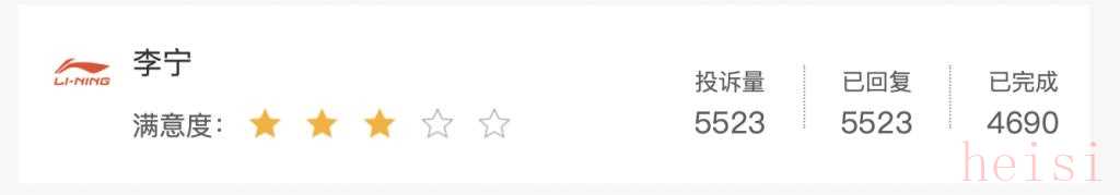 更令李寧頭疼的是,產(chǎn)品質(zhì)量問題引發(fā)的投訴不斷。在第三方黑貓投訴平臺上,截至目前,李寧累計(jì)投訴高達(dá)5523次,消費(fèi)者投訴主要集中在疑似將退貨重新販賣、售后不處理、產(chǎn)品存在質(zhì)量問題、退款困難、中獎不兌現(xiàn)等方面。