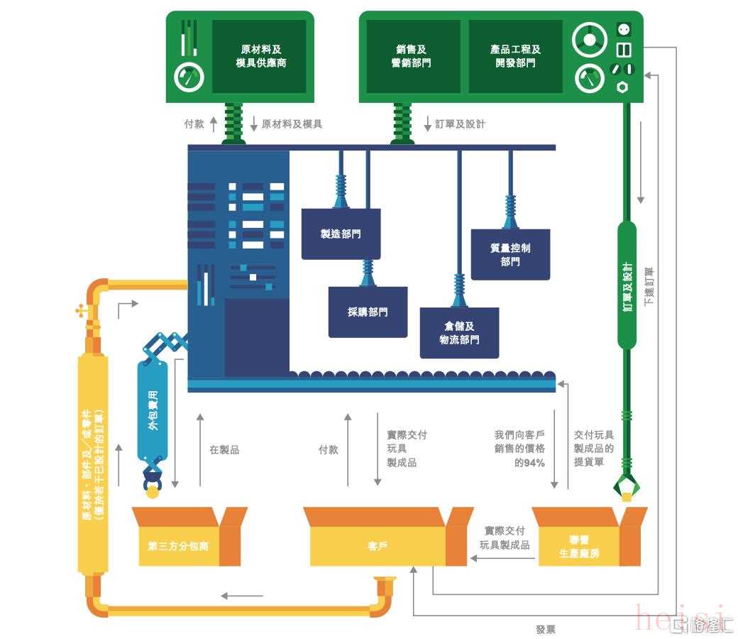 其客戶主要分布在日本、北美、韓國及歐洲的國際玩具品牌(例如多美(Tomy)、孩之寶(Hasbro)、斯平瑪斯特(Spin Master)、YoungToys及美泰(Mattel))以及玩具設(shè)計(jì)及營銷公司(例如東京唯一(Tokyo Unique))。該公司的玩具產(chǎn)品包含不同玩具、動畫及電影系列,例如一個變形機(jī)械玩具產(chǎn)品系列及一個金屬玩具車系列。
