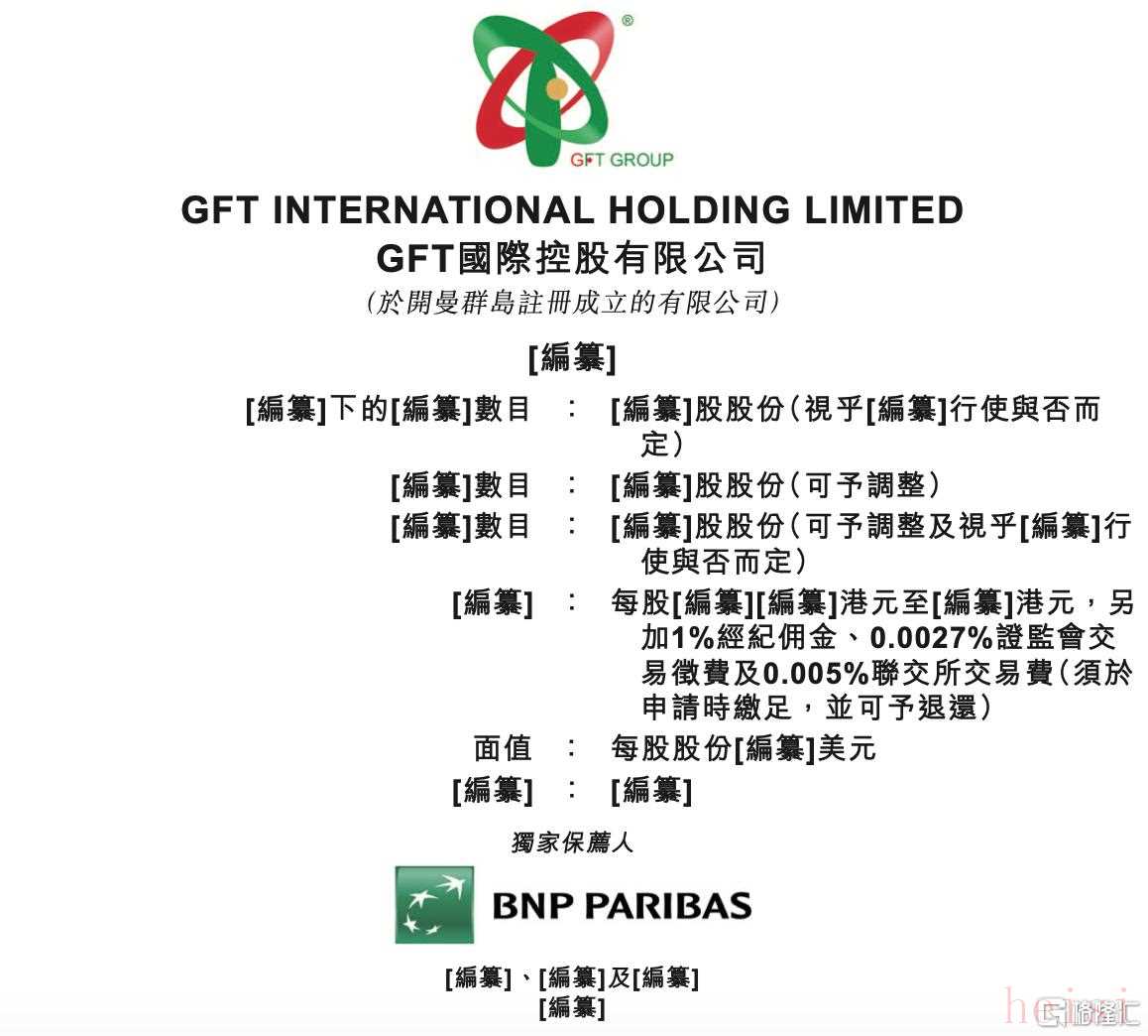 格隆匯新股消息,9月19日GFT國際控股有限公司(以下簡稱“GFT控股”)向港交所遞交主板上市申請,法國巴黎銀行擔(dān)任其獨(dú)家保薦人。