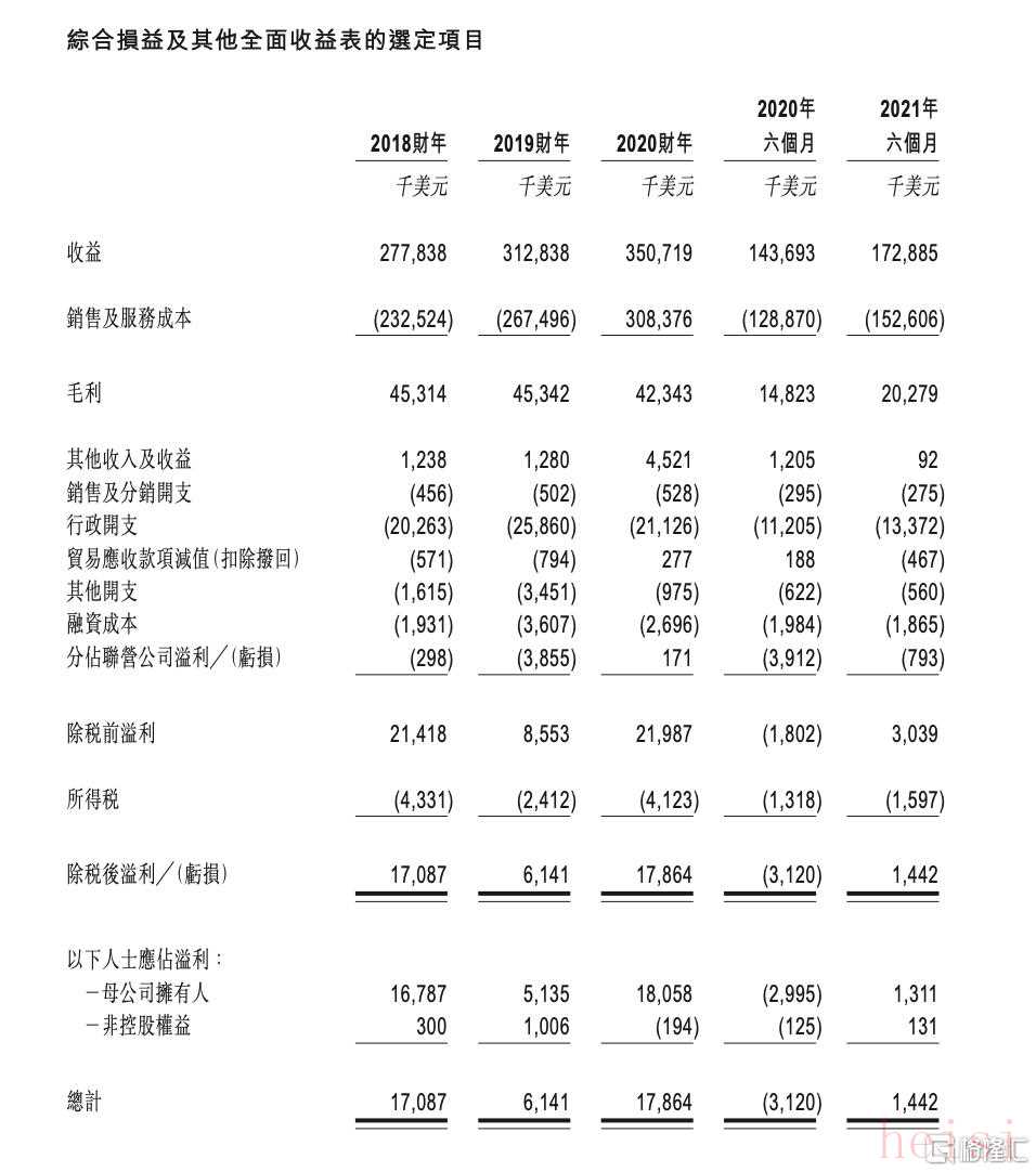 GFT國際于2018、2019、2020財(cái)年及2021年六個月的收益分別為2.77億,3.12億,3.50億及1.72億美元,毛利分別為4531.4萬、4534.2萬、4234.3萬及2027.9萬美元。