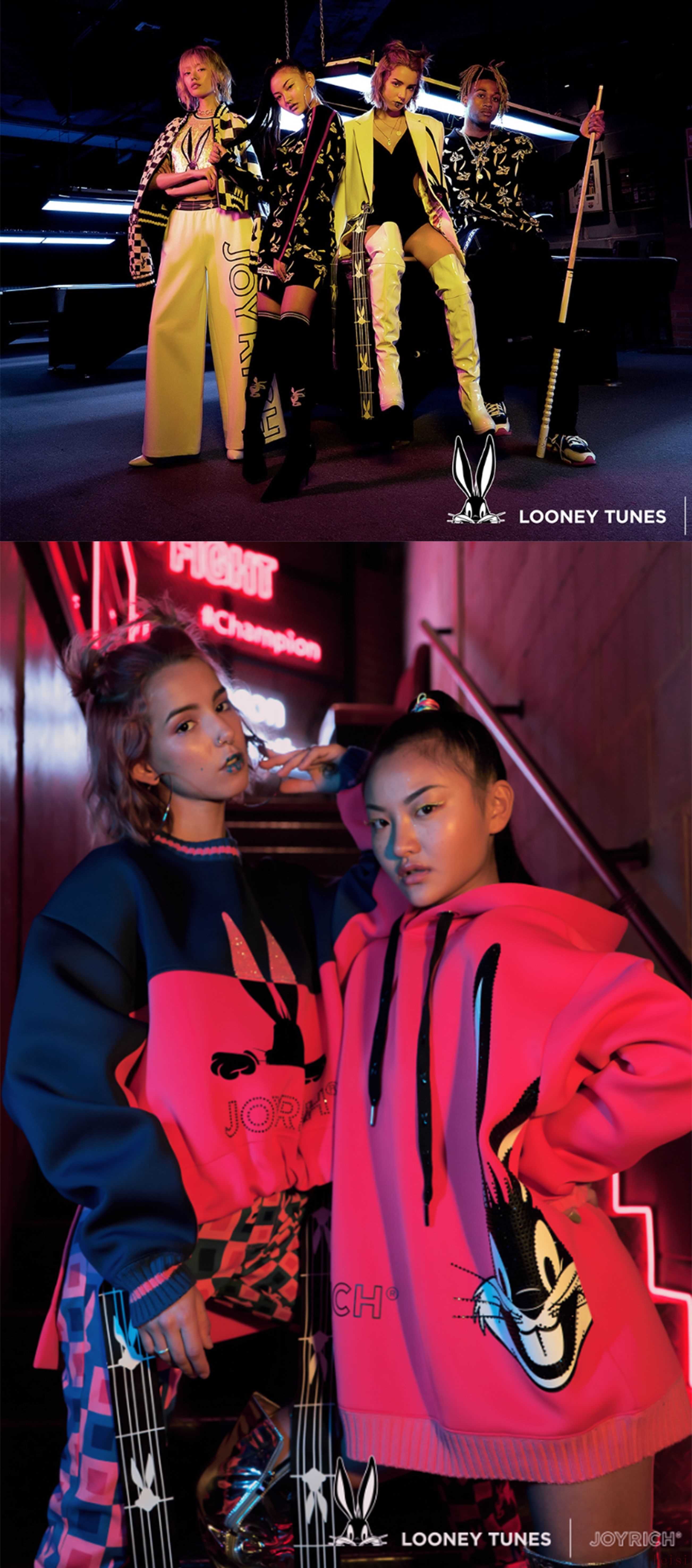 另外,洛杉磯潮牌JOYRICH在2018年秋冬系列中推出了與樂(lè)一通的限定聯(lián)名系列,包含西裝、熱褲、連衣裙等多款單品,配色以霓虹般亮眼的黃色、藍(lán)色、粉色為主,版式寬松,圖案浮夸,街頭感十足。