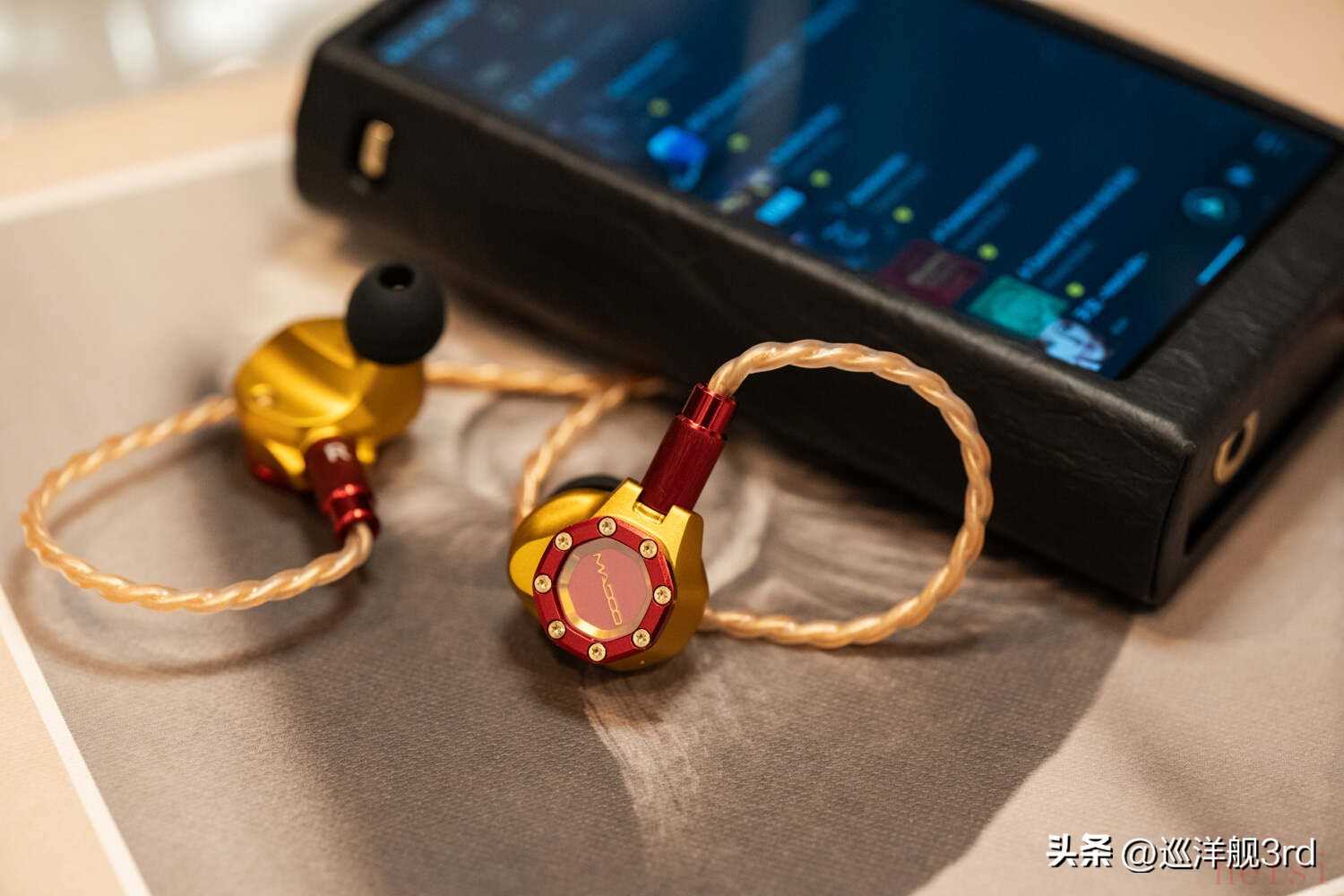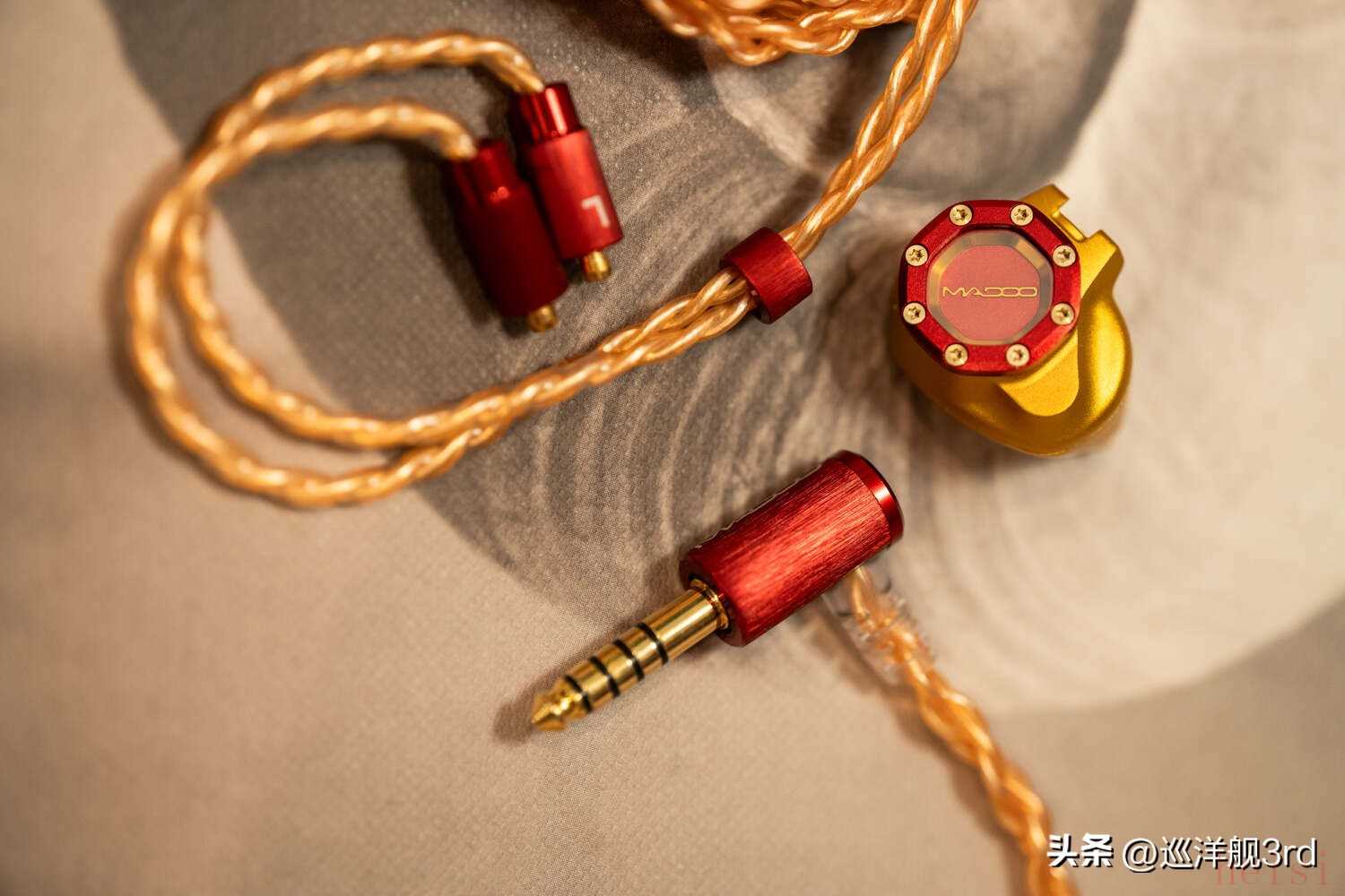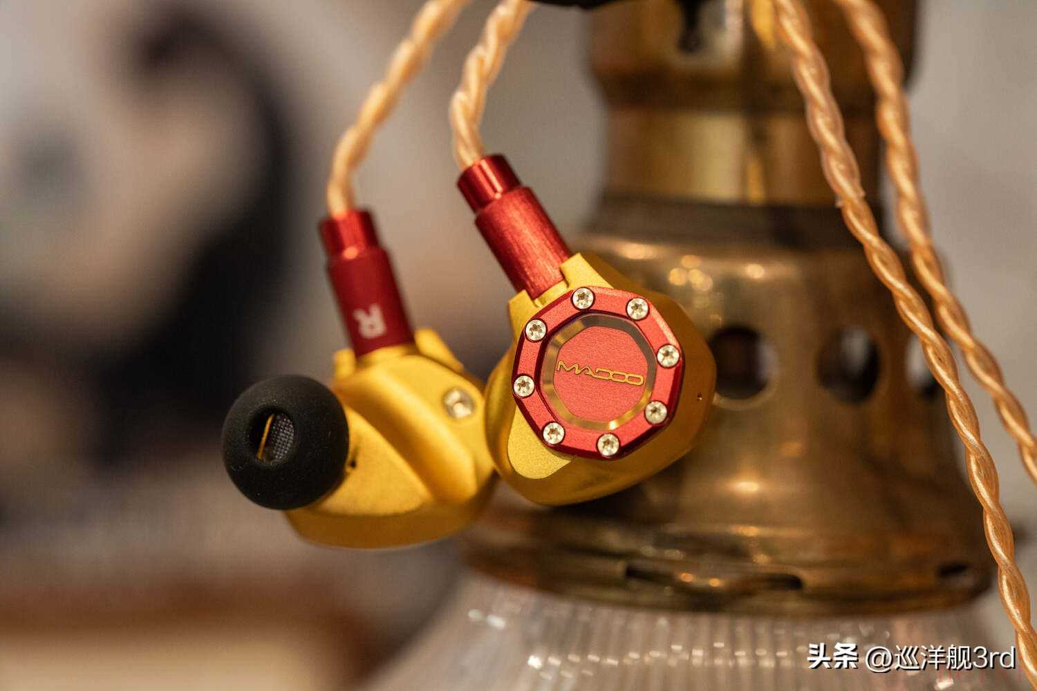 作為本文主角的Madoo Typ622被燒友們記住,坦白講大概率不是因?yàn)槁曇舳且驗(yàn)檫@個(gè)硬朗的、充滿(mǎn)機(jī)械感的精致外觀,尤其是神似潛艇舷窗或鐘窗表盤(pán)的面板,金屬圈+螺母設(shè)計(jì)和覆蓋中央的藍(lán)寶石水晶,堪稱(chēng)設(shè)計(jì)上的神來(lái)之筆,而藏于藍(lán)寶石之下的“Madoo”文字,散發(fā)著金色的光澤。除了起初的黑金配色之外,相信大多數(shù)人都更喜歡Typ622的這個(gè)紅金也就是“鋼鐵俠”配色,典雅貴氣的同時(shí),經(jīng)過(guò)噴砂處理的細(xì)膩鋁合金外殼散發(fā)出強(qiáng)烈的金屬質(zhì)感,從心理上也能給人以沉穩(wěn)可靠的暗示。再加上這款耳塞嚴(yán)絲合縫的工藝和出色的細(xì)節(jié)雕琢,比起一些售價(jià)貴很多的產(chǎn)品都要強(qiáng)上不少。本篇成文之前幾天,我?guī)е鳷yp622給一個(gè)本地?zé)雅笥崖?tīng)了一耳朵,聲音他雖然也挺喜歡,但臨走前還是一直念叨著這耳機(jī)的樣子“太尊了”——Typ622外觀設(shè)計(jì)與做工的優(yōu)秀,可見(jiàn)一斑。