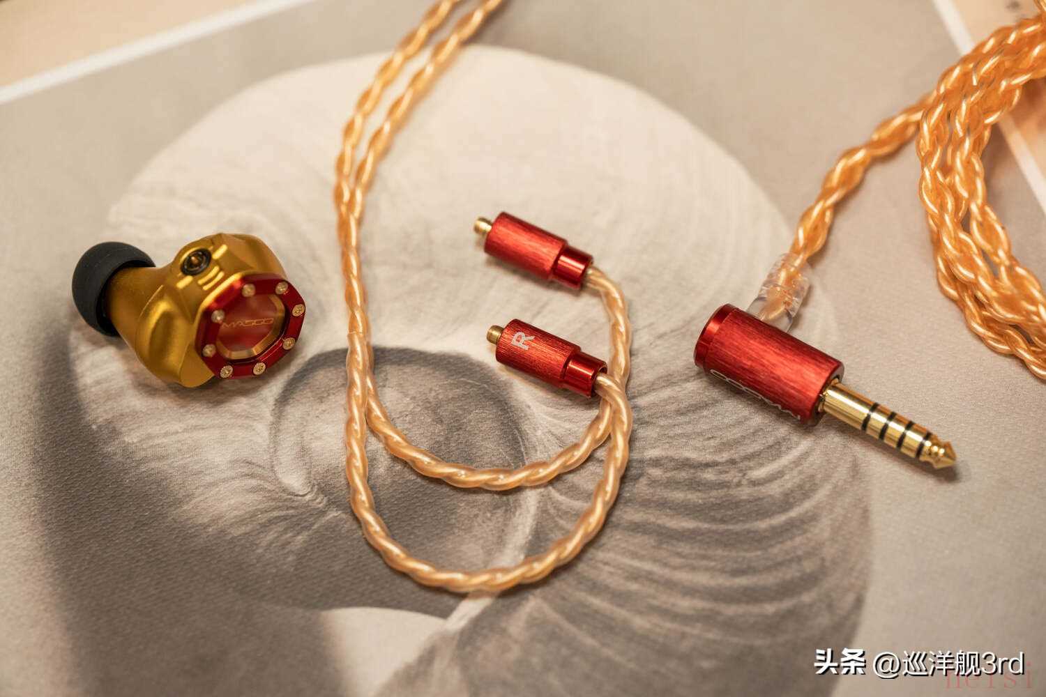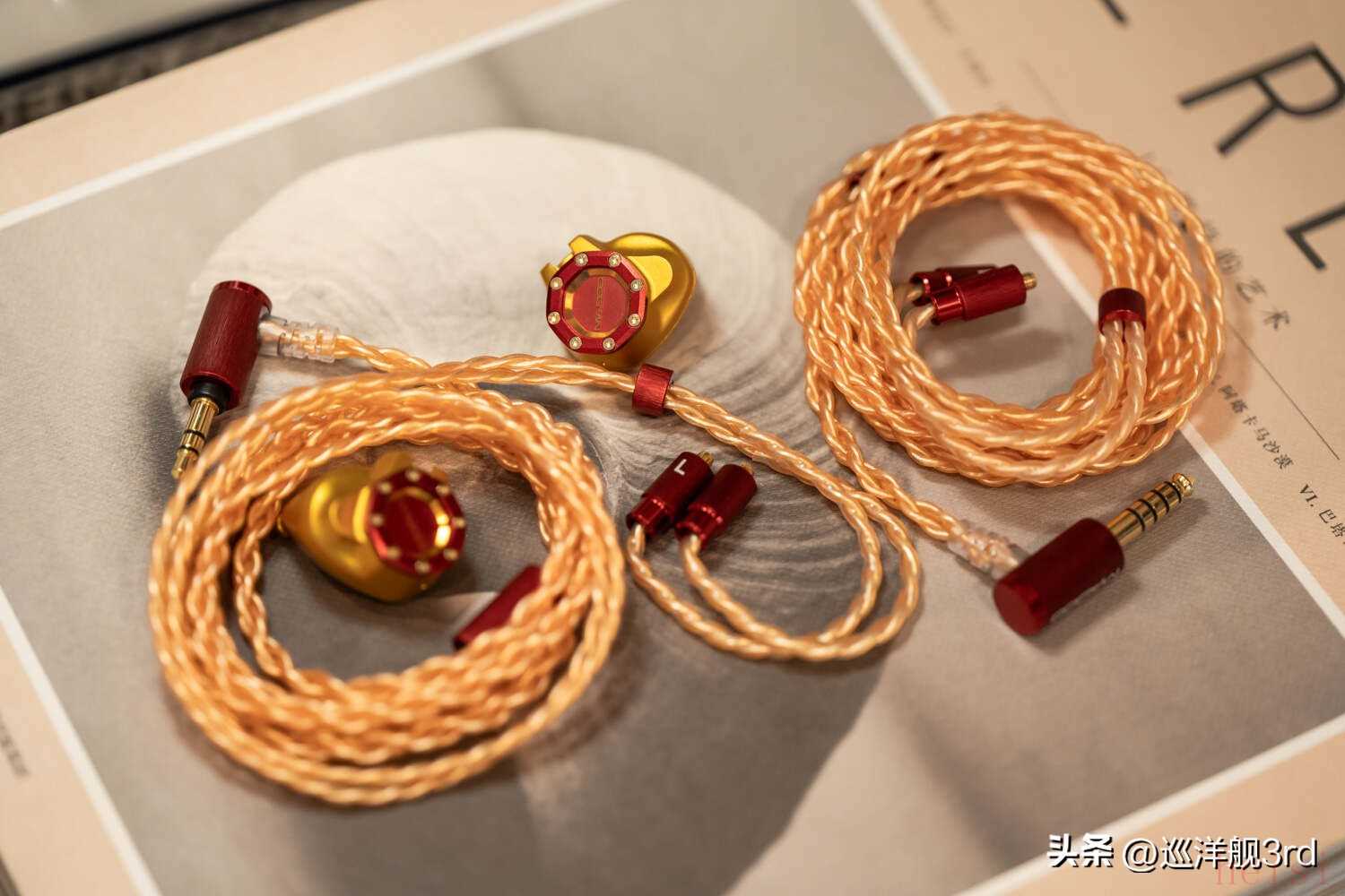 Typ622標(biāo)配有3.5mm和4.4mm插頭兩根線(xiàn)材,型號(hào)分別叫MRC011和MRC023,材質(zhì)為4股鍍銀銅,線(xiàn)身和五金件的顏色與耳機(jī)腔體相呼應(yīng),同為紅金配色。由于PE插針的關(guān)系,本次沒(méi)有給Typ622測(cè)試換線(xiàn)后的聲音表現(xiàn)。事實(shí)上個(gè)人認(rèn)為PE插針相當(dāng)于解決了痛點(diǎn)的MMCX,在穩(wěn)固性、可靠性、便利性和接觸方面都有更好的表現(xiàn),可惜沒(méi)有推廣開(kāi)來(lái)。作為Pentaconn自家關(guān)聯(lián)企業(yè)的產(chǎn)品,Typ622用PE也無(wú)可厚非——當(dāng)然,更重要的是Typ622標(biāo)配線(xiàn)材和耳機(jī)的搭配,已經(jīng)能提供出色的聲音表現(xiàn)了。