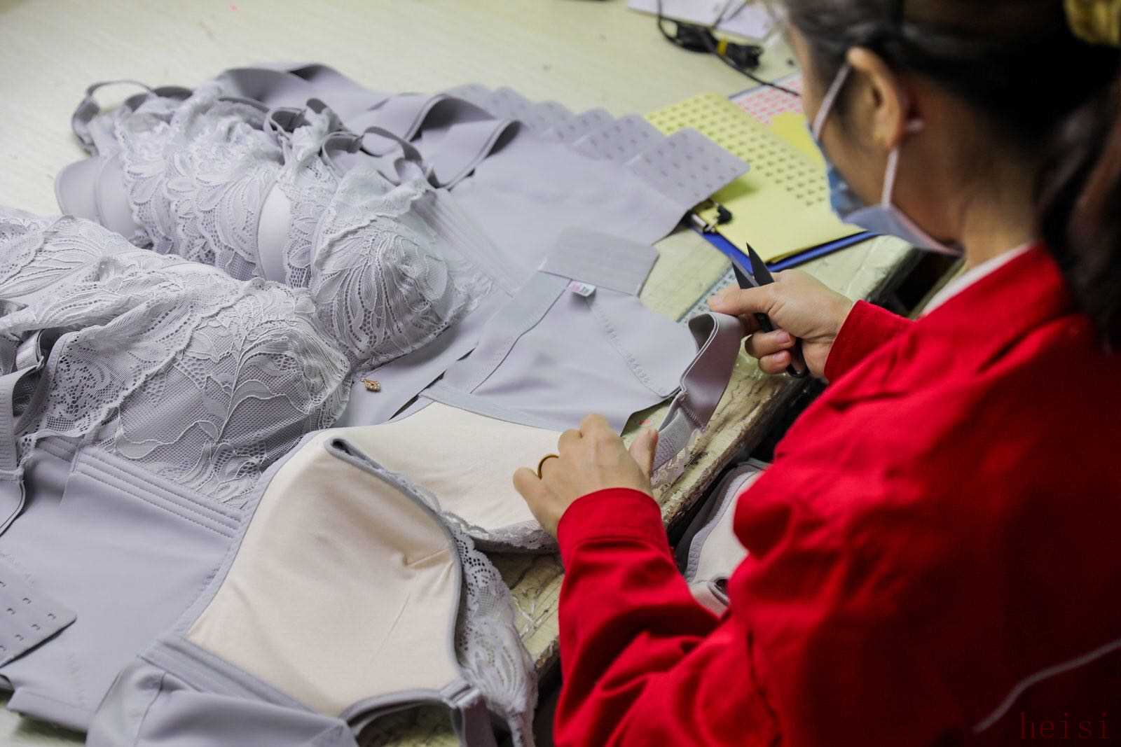 前一秒縫制好蕾絲花邊的文胸在下一秒就被移送至另一位工人手中,進行肩帶搭扣的配置??焖儆行虻墓ぷ髁鞒滔?,任何環(huán)節(jié)如若出現(xiàn)偏差會在第一時間被發(fā)現(xiàn)并解決。