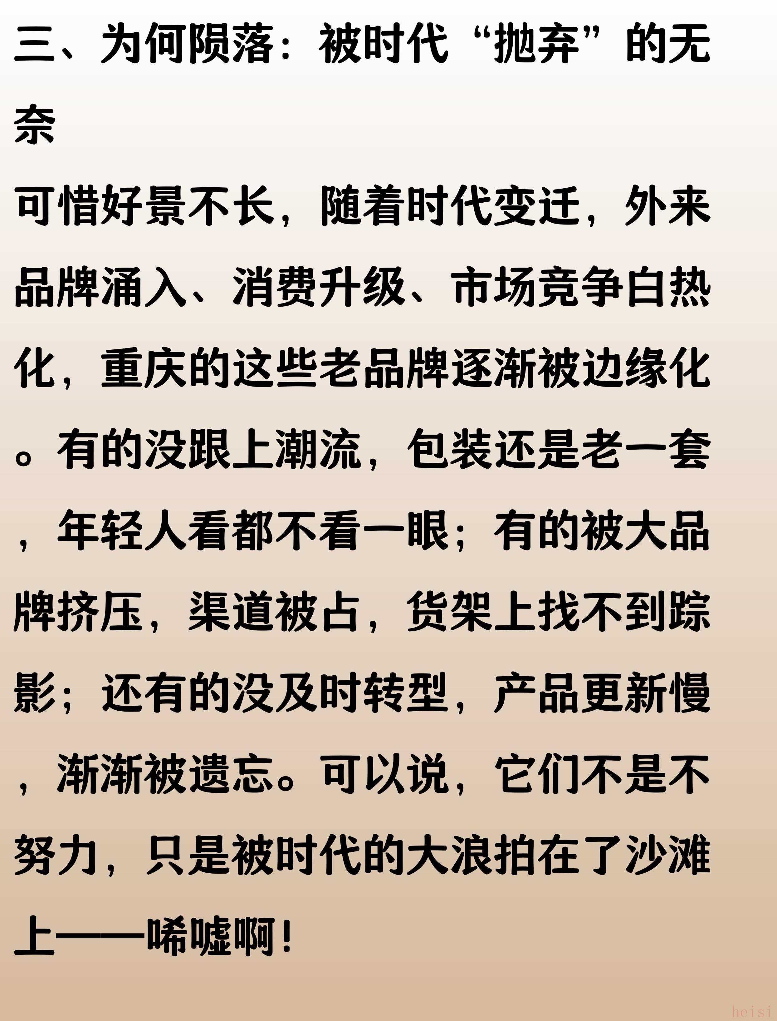 重慶老品牌的興衰,映射出城市變遷和消費(fèi)觀念的巨大轉(zhuǎn)變。數(shù)據(jù)顯示,2023年重慶本地品牌存活率不足30%(數(shù)據(jù)來(lái)源:重慶市商務(wù)委員會(huì)2023年度報(bào)告)。曾經(jīng)風(fēng)靡一時(shí)的名字,如今成為集體記憶。品牌的消失并非偶然,而是市場(chǎng)優(yōu)勝劣汰的必然結(jié)果。只有不斷創(chuàng)新和適應(yīng)時(shí)代潮流,企業(yè)才能立于不敗之地。城市的發(fā)展,也需要更多本土品牌的堅(jiān)守與突破。