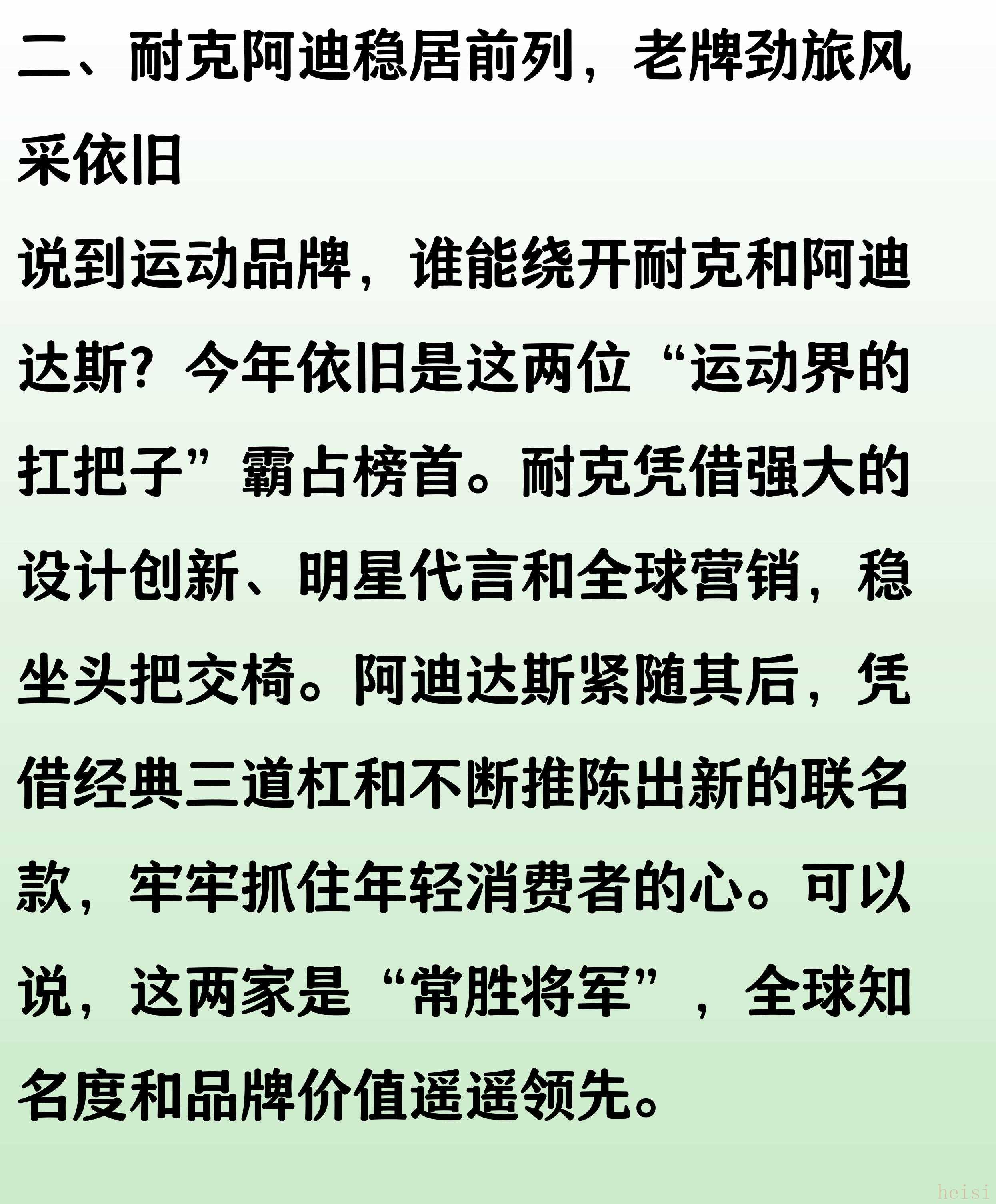 這表明安踏和李寧在全球運動品牌中的價值和影響力持續(xù)提升,安踏更是進入了全球頂尖品牌的行列。