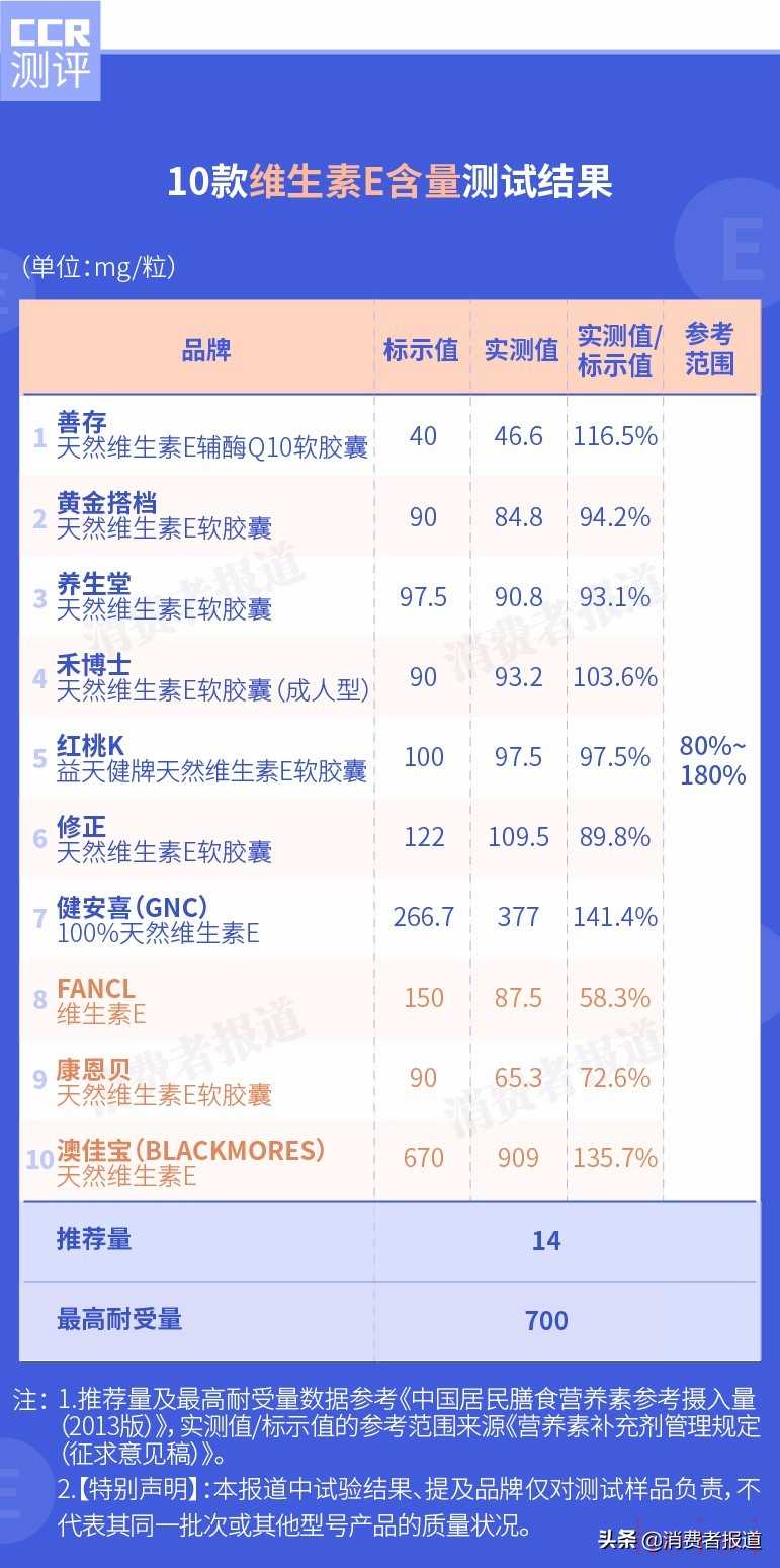 "10款維生素E產(chǎn)品測評摘要:關注澳佳寶高含量風險"