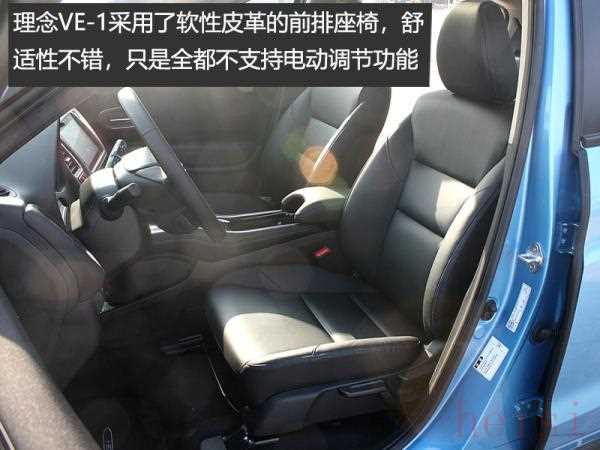 理念VE-1采用了軟性皮革的前排座椅,舒適性不錯,只是全都不支持電動調(diào)節(jié)功能。理念VE-1的后排腿部和頭部空間與繽智相差無幾,后排地臺中間也沒有隆起。此外,后排配備了雙USB手機充電接口。