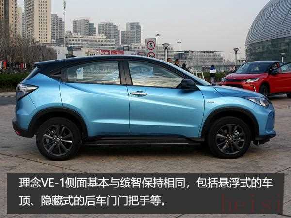 車身側(cè)面,理念VE-1基本與繽智保持相同,包括懸浮式的車頂、隱藏式的后車門門把手等。尺寸方面,新車長寬高分別為4308/1824/1625mm,軸距則同樣維持2610mm不變。此外,新車配備了深灰色涂裝的運動式輪轂,車側(cè)翼子板處也加入了“EV”字樣。