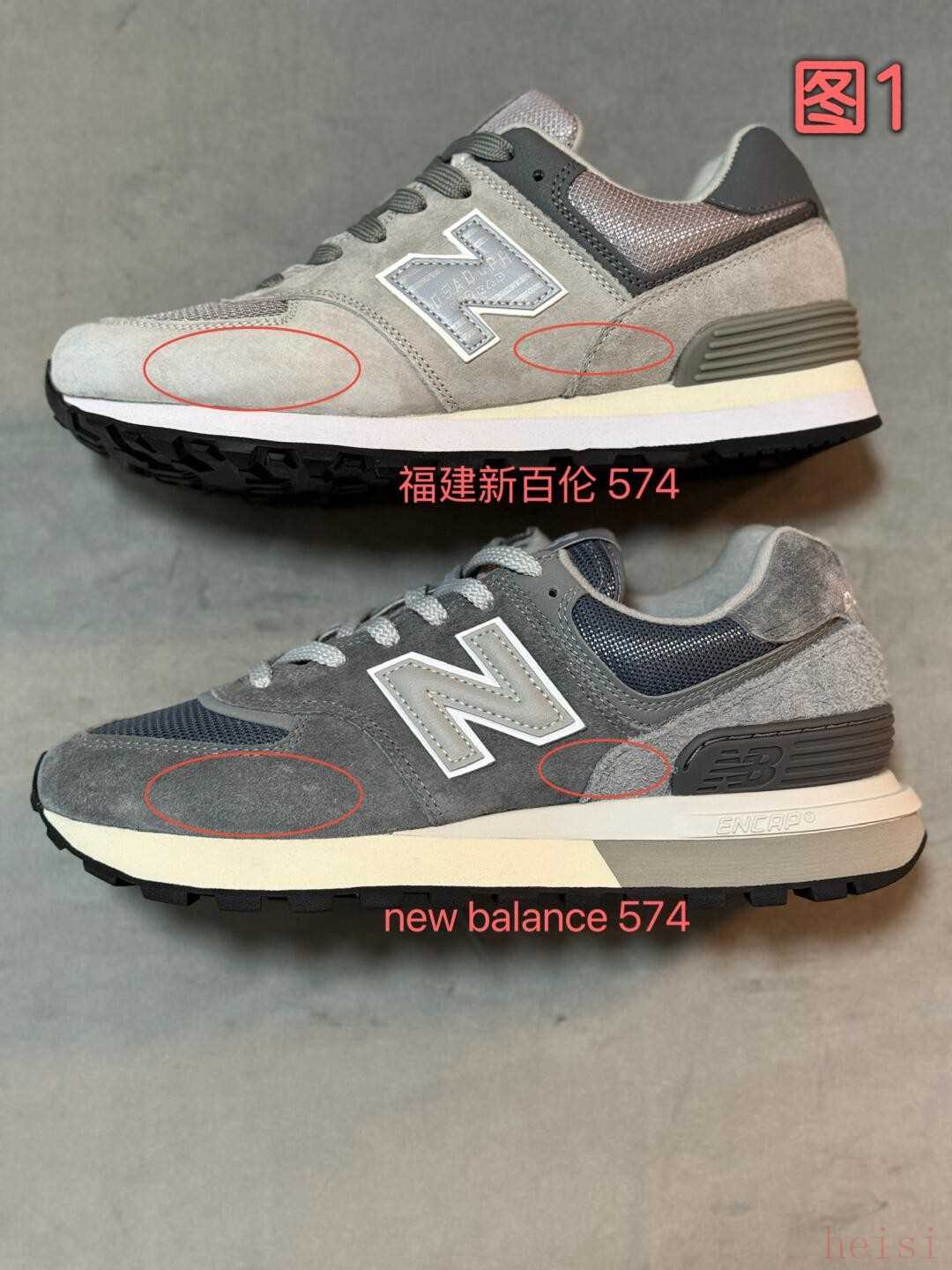 圖1,兩款鞋都是豬皮翻毛,區(qū)別是nb的皮要厚一些。