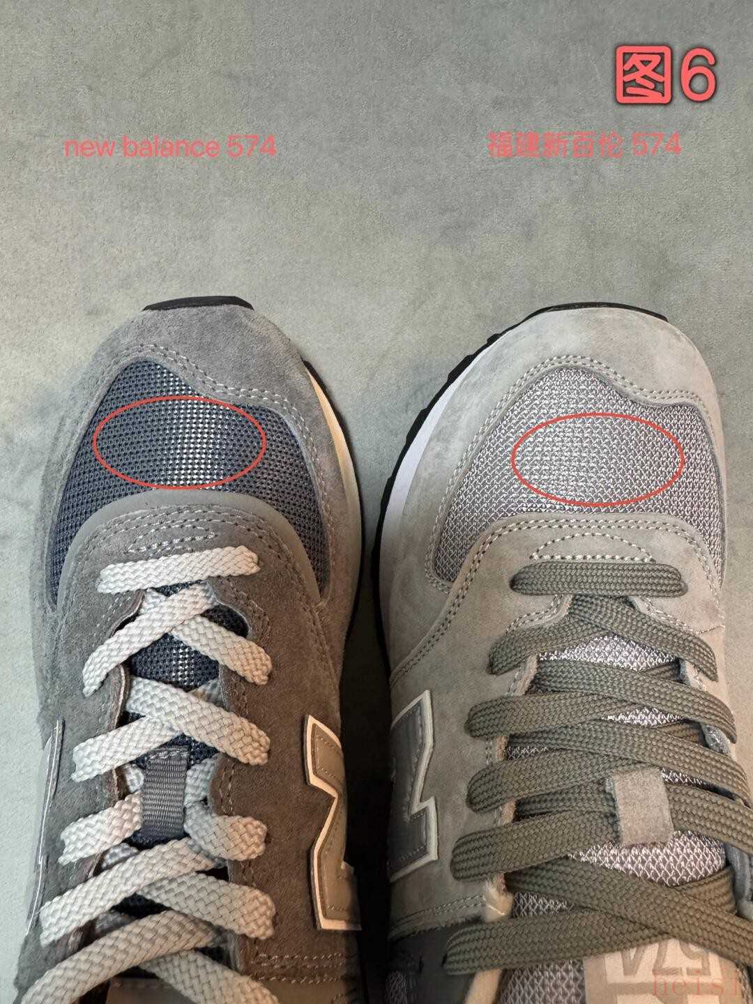 圖6,透氣網(wǎng)狀物,nb偏硬,新百倫偏軟,具體哪個(gè)耐磨透氣性好,觀感無(wú)法判斷。