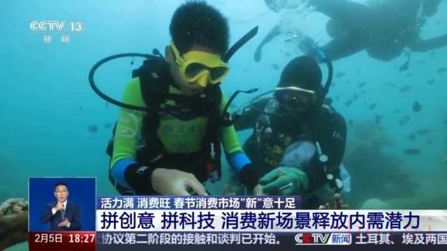 在三亞蜈支洲島景區(qū),創(chuàng)意十足的潛入海底移植珊瑚、火烈鳥品牌餐廳、直升機環(huán)島游等項目,帶火親子游消費新場景,春節(jié)假期,蜈支洲島景區(qū)的日均接待量近兩萬人次。