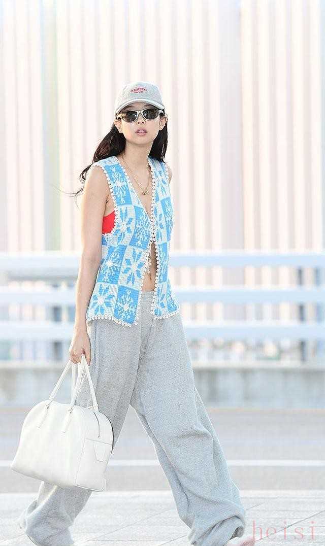 Jennie這套機(jī)場(chǎng)look夠分裂的。