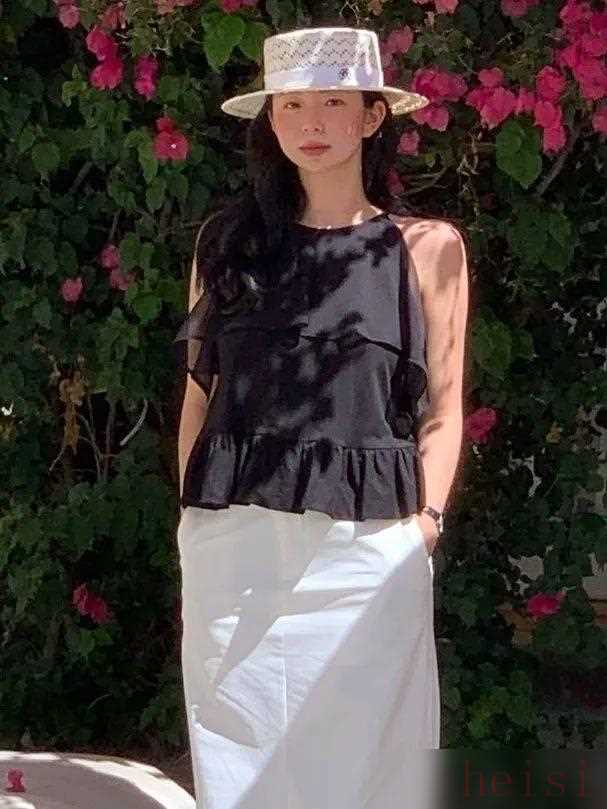 經(jīng)典黑白配果然是永不出錯的選擇,張子楓那套黑白滾邊度假裝看得我直拍大腿。