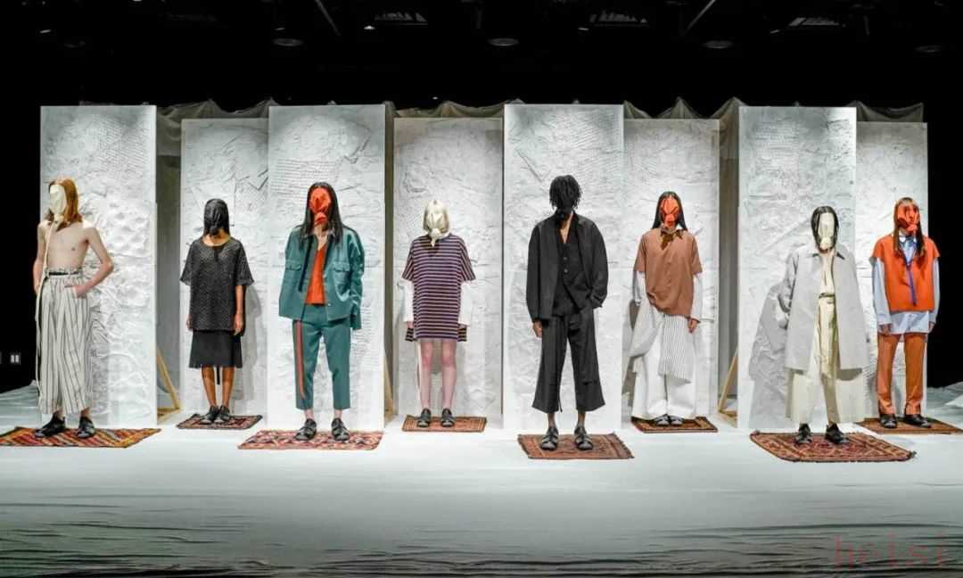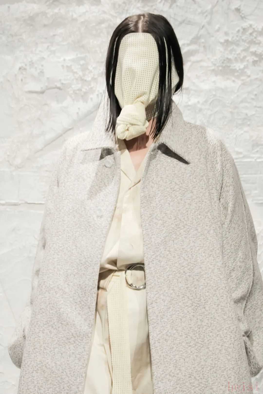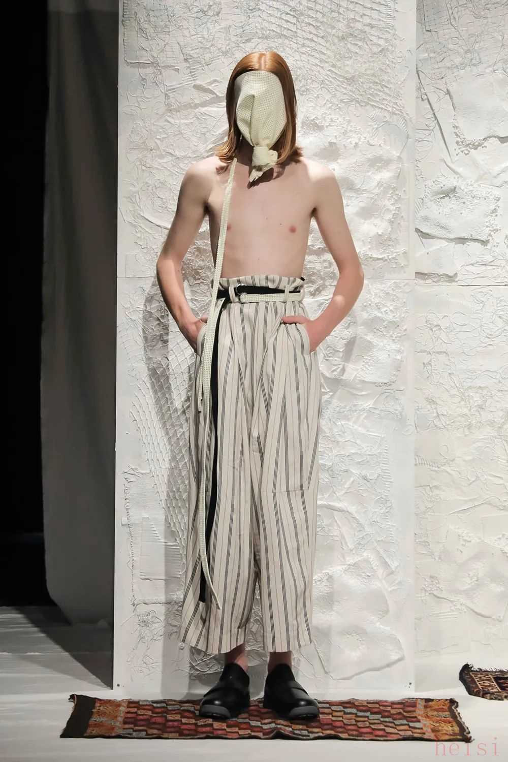 SHINYAKOZUKA 在 2020 春夏季度發(fā)布以「平凡中的模糊」作為主題的系列作品,在立足于「平凡生活」的同時,希望人們能夠通過這一系列作品發(fā)散其想象力。為強(qiáng)化這一主題,在 2019 年秋季東京 Rakuten Fashion Week 中首度登臺亮相的 SHINYAKOZUKA 2020 春夏季度的模特們均以面罩遮蓋真正面容,在性別、種族等條件模糊的情況下,令人們的注目點(diǎn)能夠更多地放在服裝作品上,而非身著這些作品的人。