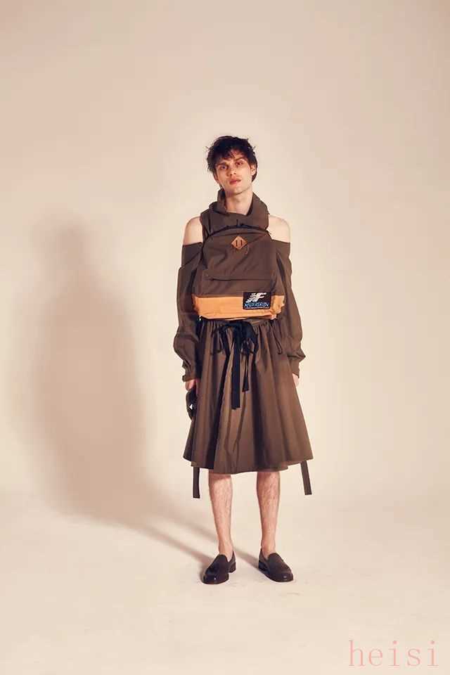 無論是在服裝作品的設(shè)計風(fēng)格上還是 Lookbook 的表達(dá)上,Re:quaL≡ 一貫選擇以較為夸張、大膽的方式呈現(xiàn)。男模特身著裙裝已是 Re:quaL≡ 每一季度作品中的「定番造型」,在西裝外套設(shè)計中展現(xiàn)獨(dú)樹一幟的時尚美學(xué),如背部鏤空、多重解構(gòu)等,甚至于在 2020 秋冬季度中以巨大的蝴蝶結(jié)作為點(diǎn)綴,由「Equal」代表著的「無性別主義時尚」在 Re:quaL≡ 的設(shè)計中被淋漓盡致地發(fā)揮出來,「時尚,不應(yīng)因性別之差而被定義」。