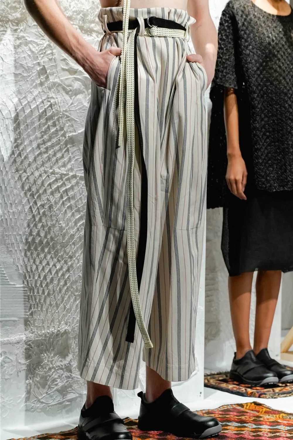 我們能夠從 SHINYAKOZUKA 2020 春夏季度中感受到強(qiáng)烈的「日常感」,無論是 T 恤、襯衫亦或褲款設(shè)計,均以簡約的創(chuàng)作手段進(jìn)行處理,并沒有給人一種「曲高和寡」的感覺。但在仔細(xì)觀察后,則會發(fā)現(xiàn)小塚信哉在選材用料方面的「良苦用心」,例如在直筒九分褲設(shè)計中所應(yīng)用的條紋元素,實(shí)際上經(jīng)過了比想象中更多的拼接與「扭曲」處理。SHINYAKOZUKA 的設(shè)計亮點(diǎn)更多地在于細(xì)節(jié)之中,而非直白地向人們展現(xiàn)?;蛟S在平凡的日常生活中,很難察覺到這些細(xì)節(jié)所帶來的的改變,但當(dāng)你真正發(fā)現(xiàn)小塚信哉寓于設(shè)計中的巧思,亦不失為一種「意外之喜」。