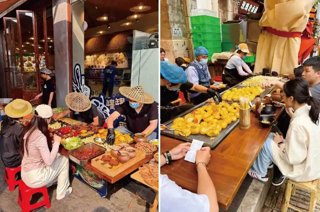 ◎圖源:肖蘸罐罐米線這種設(shè)計不僅增強了用餐的多樣性與搭配靈活性,也讓門店能根據(jù)時間段靈活調(diào)整產(chǎn)品重心。白天主打罐罐米線及云南風(fēng)味簡餐,夜晚則切換至邊境燒烤、小吃與夜宵,全面覆蓋一日三餐與聚餐場景,極大地提升了顧客復(fù)購率與到店頻次。