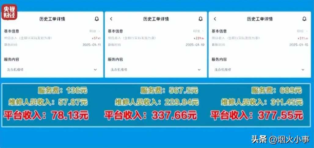 由于平臺掌握了大部分客源,維修師傅往往不得不接受這些不合理的收費標(biāo)準(zhǔn)。