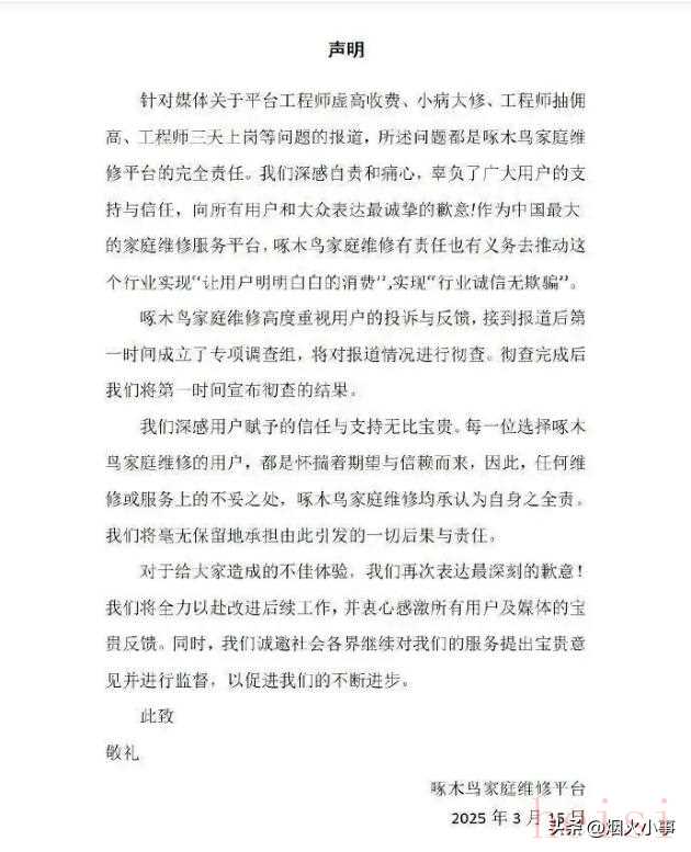 啄木鳥的第二次聲明雖然看似有誠意,但是否能夠真正改正其長期積累的問題仍然值得觀察。