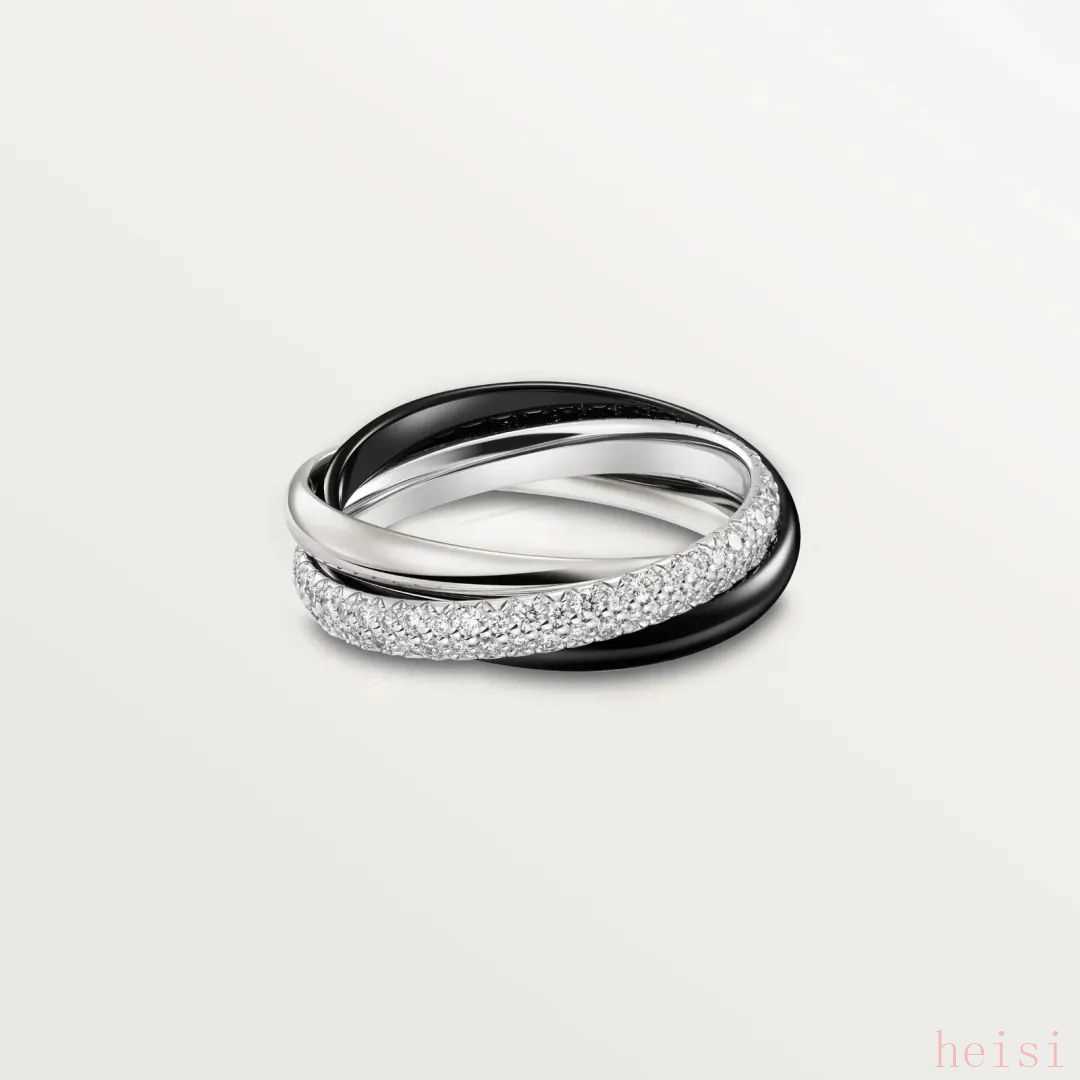 CARTIER「TRINITY」系列戒指(WGx黑色陶瓷/半鋪鑲鉆石0.46ct;小型款)