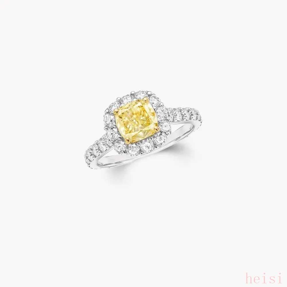 GRAFF「Icon系列」雷地恩形切割黃鉆和白鉆戒指(18K白金x枕形切割黃鉆1.15ct/密鑲白鉆)