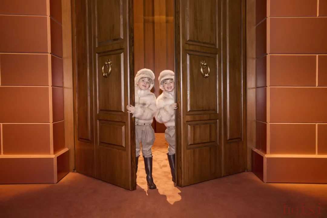 1967年——FENDI品牌發(fā)布了1967-68秋冬系列,這是時尚史上最早期的中性系列之一,也是Karl Lagerfeld為FENDI設(shè)計的第二個系列,當(dāng)時年僅6歲的Silvia Venturini Fendi出演了該系列的廣告大片。這一廣告大片也是由Karl Lagerfeld掌鏡拍攝。今天,她的孫輩、雙胞胎兄弟Dardo和Tazio身著Karl Lagerfeld設(shè)計的馬術(shù)套裝復(fù)刻版推開木門,引領(lǐng)模特登場,開啟本季男女時裝大秀。