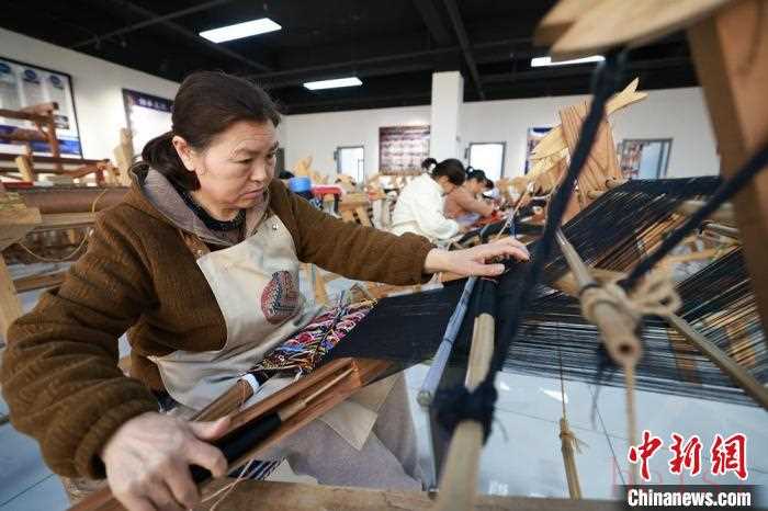 挑紗、引線、打結(jié)……近日,在湖北省恩施市六角亭街道匠心坊西蘭卡普體驗基地,織女的手指和梭子在絲線間跳躍,雙腳交替輕踩踏板,機杼聲聲中,精美的紋樣逐步成型。